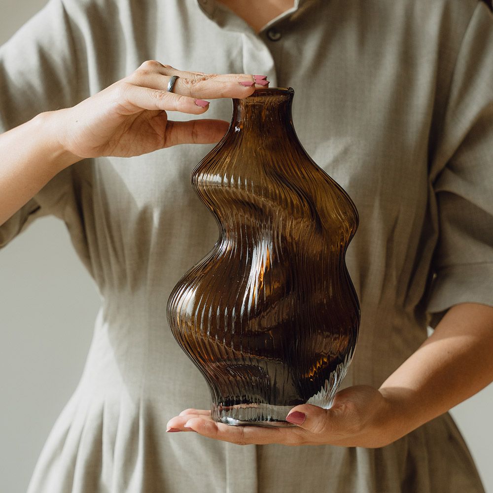 Terra Vase inspired by the fluid curves of nature, the Terra Glass Vase brings warmth and movement to any space