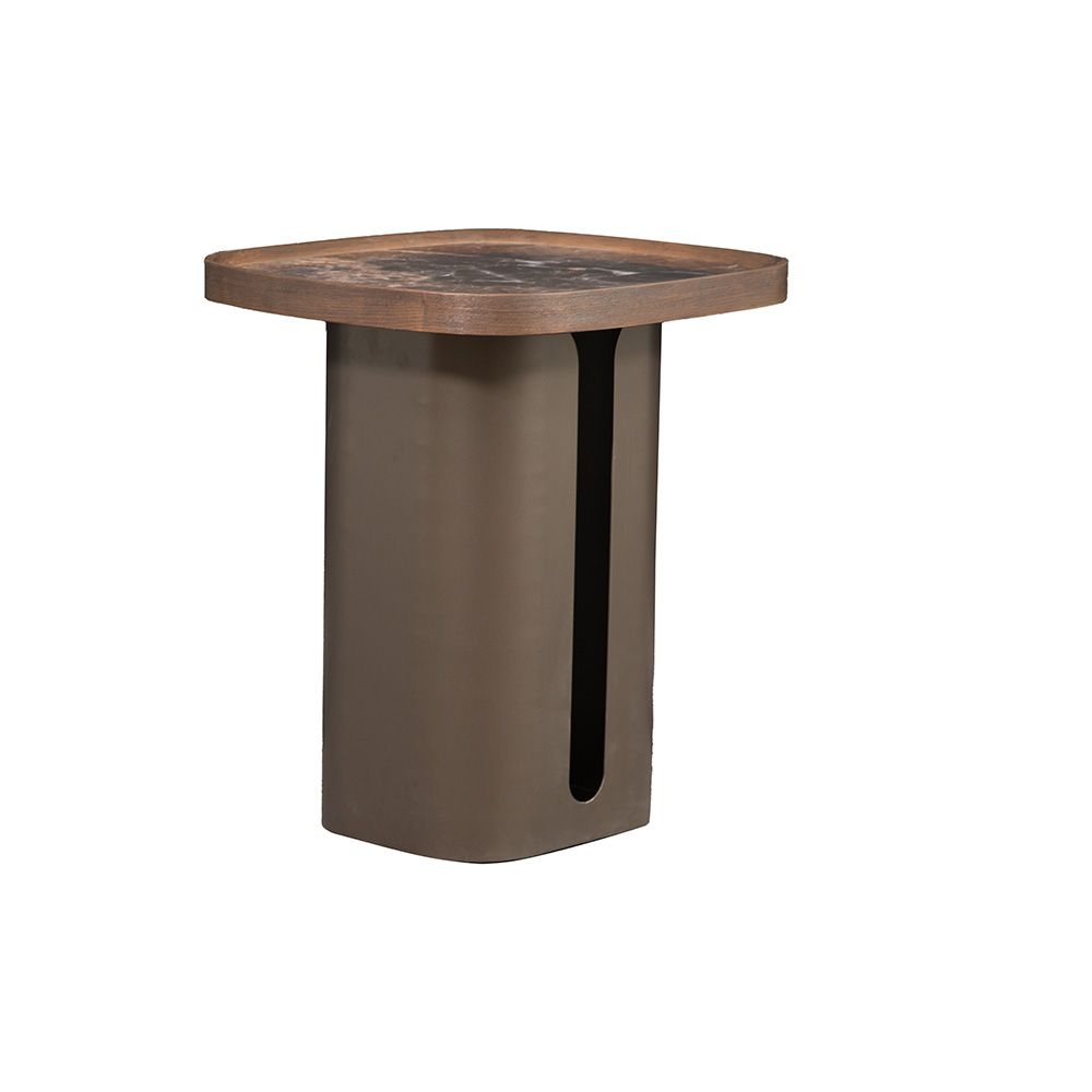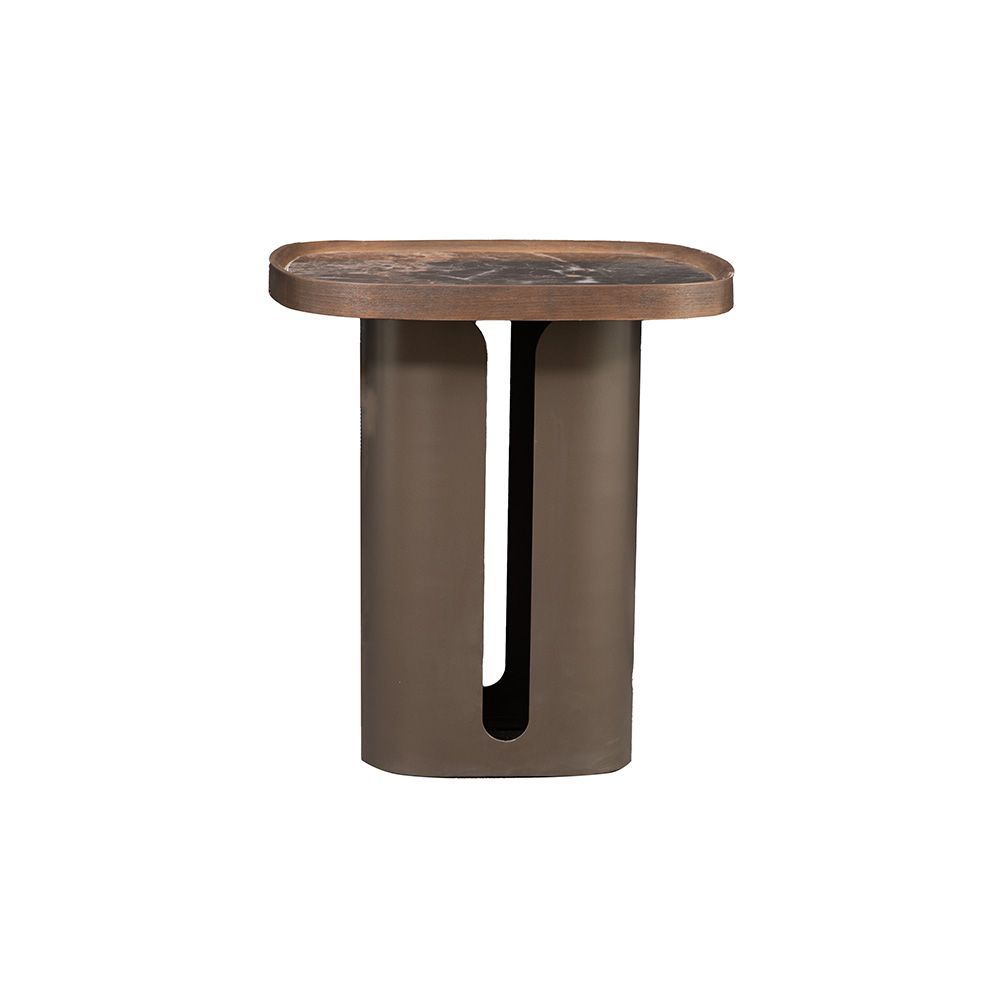 Terrakai Stone Top End Table - Brown Pattern/Bronze