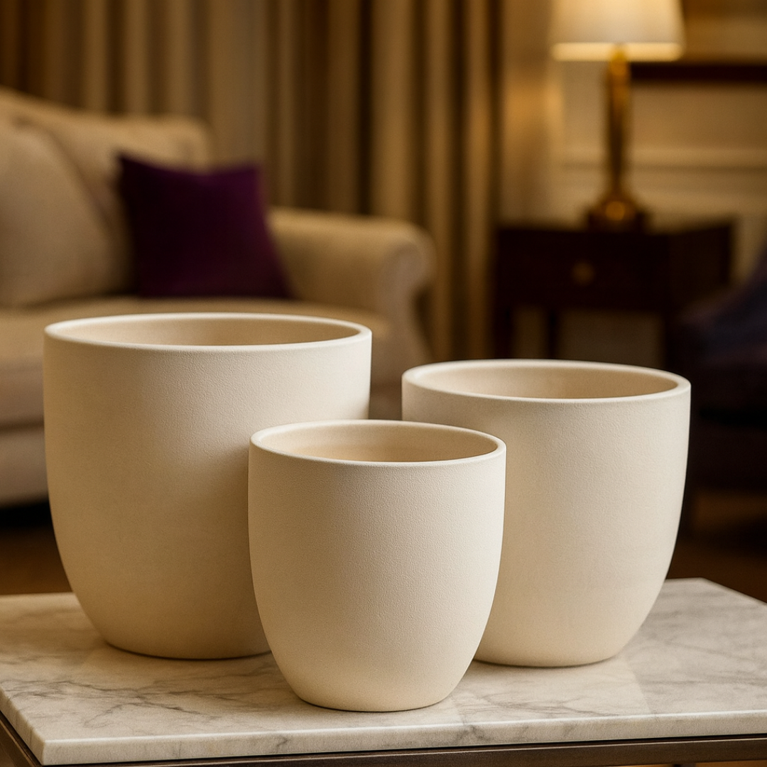 Textured Premium Beige Ceramic Planter Pot (31x30cm)
