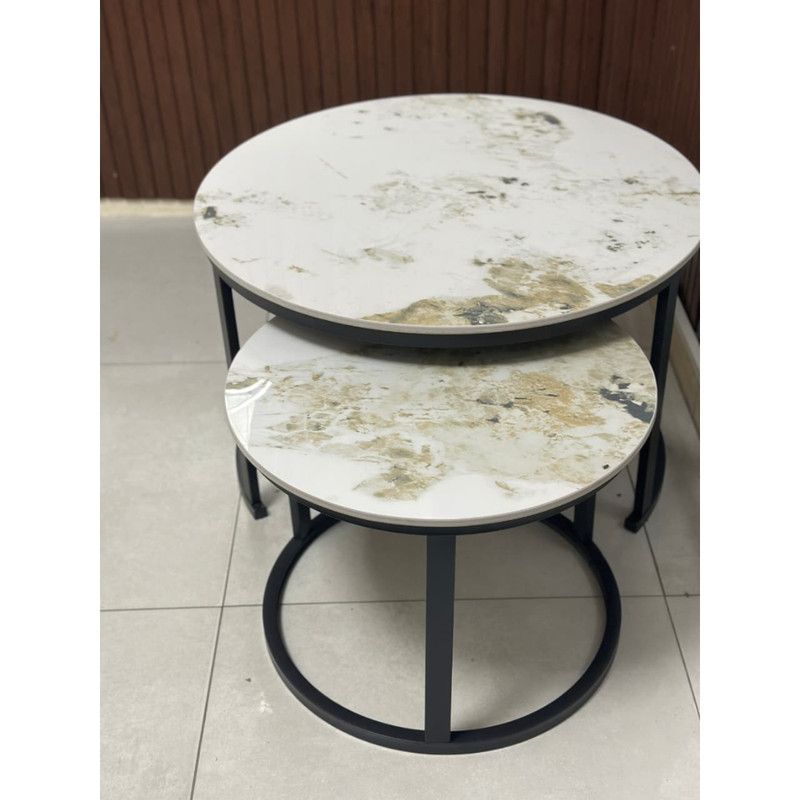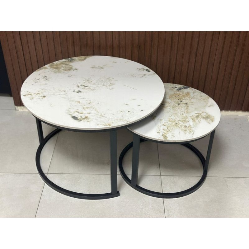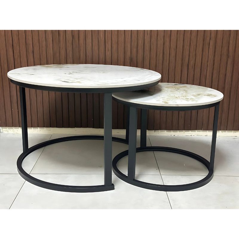 Tissaya Round Nesting Coffee Table Set of 2 End Tables for Living Room, Metal Frame, Center Table for Home Office (Marbel Top White)