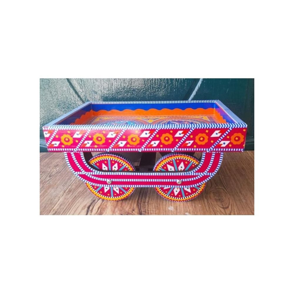 تصميم فن الشاحنات التقليدي – يتميز بأنماط مرسومة يدويًا بألوان زاهية مستوحاة من فن الشاحنات الباكستاني. مصنوع يدويًا – تم تصنيعه بعناية على يد حرفيين مهرة، مما يضمن لمسة فريدة وأصيلة. عجلات متحركة – مزود بعجلات عملية مما يتيح سهولة الحركة ويضفي عنصرًا تفاعليًا على التصميم. مواد متينة – مصنوع من الخشب والمعدن عالي الجودة لضمان المتانة وطول العمر. استخدام متعدد الأغراض – يمكن استخدامه لتقديم الوجبات الخفيفة والشاي أو كقطعة ديكور مميزة في المنزل. هدية ثقافية – هدية مثالية لمحبي الفن، وهواة الجمع، وكل من يقدر الحرف اليدوية التقليدية.
