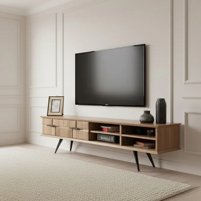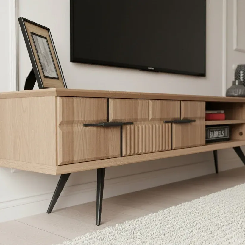 With a clever mix of open shelving and closed cabinets, the unit balances style with functionality. Display your favorite décor, books, or consoles on the open shelves, while keeping remotes, controllers, and other essentials hidden in the enclosed cabinets. Integrated cable management ensures a tidy, clutter-free look, enhancing both usability and elegance.