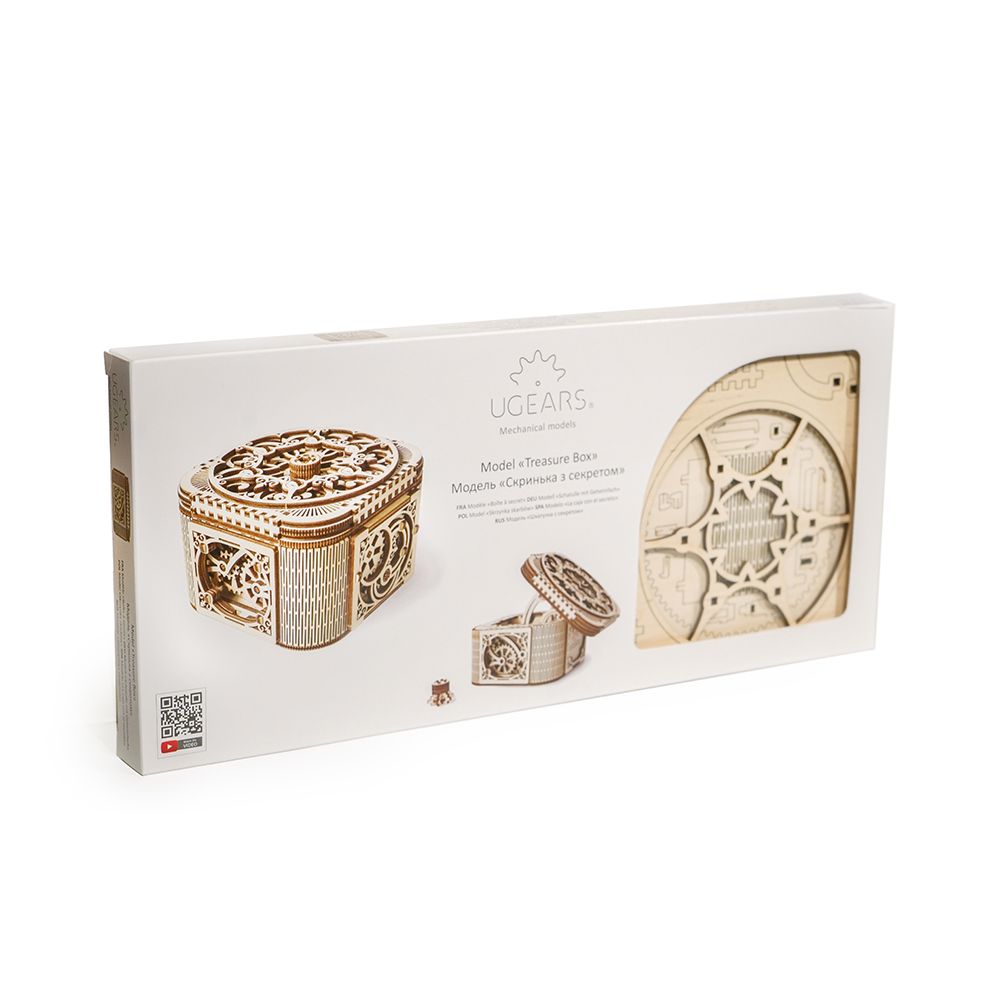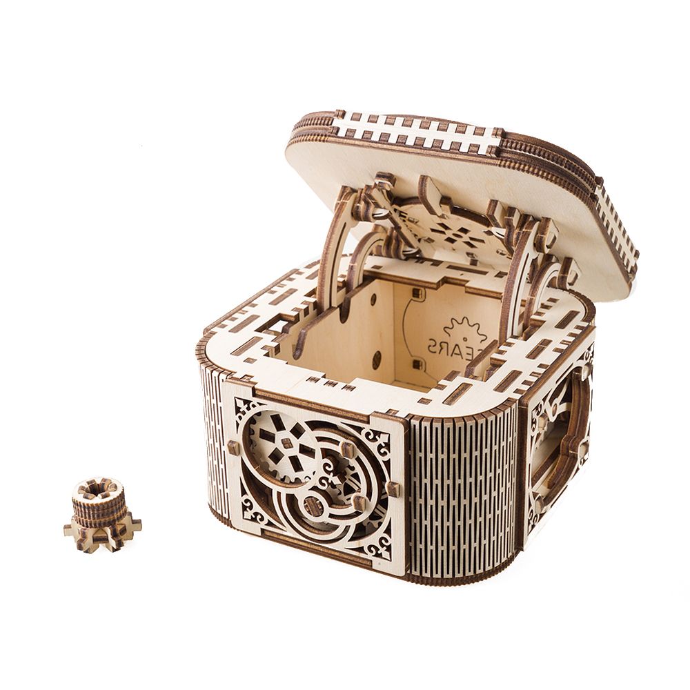 Ugears, Made in Europe, 3D Wooden Puzzle Treasure Box, Mechanical Model Kit with190 Parts DIY, Self-Assembly, Woodcraft Construction Toy, Perfect for Gifting, No Glue Needed, Brown/White, UGR-70031