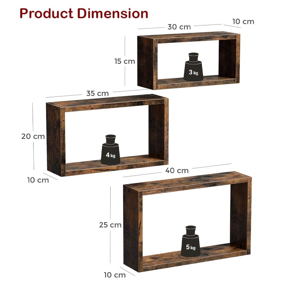 VASAGLE Decorative Floating Wall Shelves Set of 3, Cube Design Wooden Shelving for Books, Plants and Decorative Accessories - Dark Hunton Oak