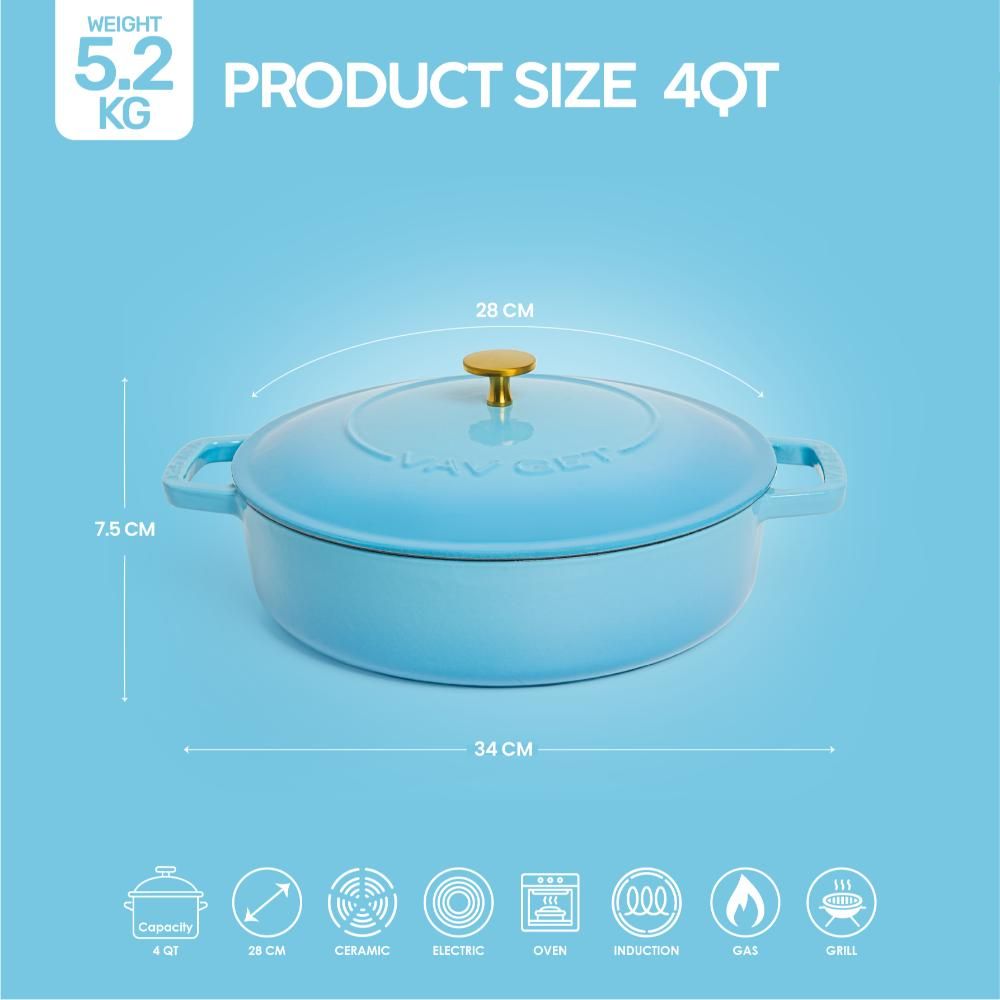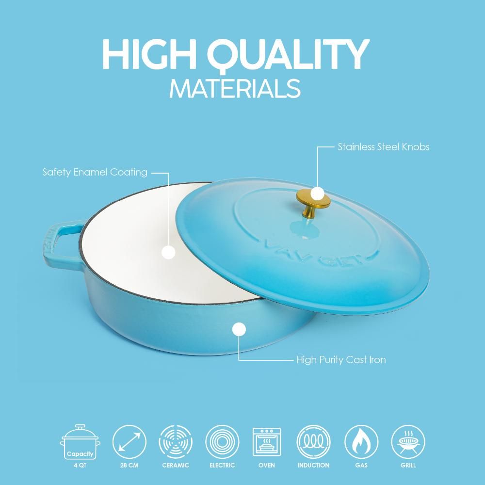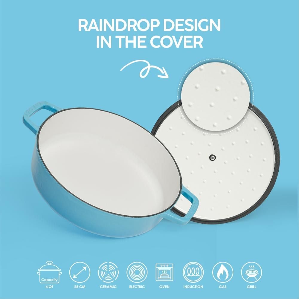 Enameled Cast Iron Dutch Oven Braiser. 28Cm, 3.79L, Ocean Blue, Induction & All Hob Compatible, Oven & Grill Safe - Ocean Blue