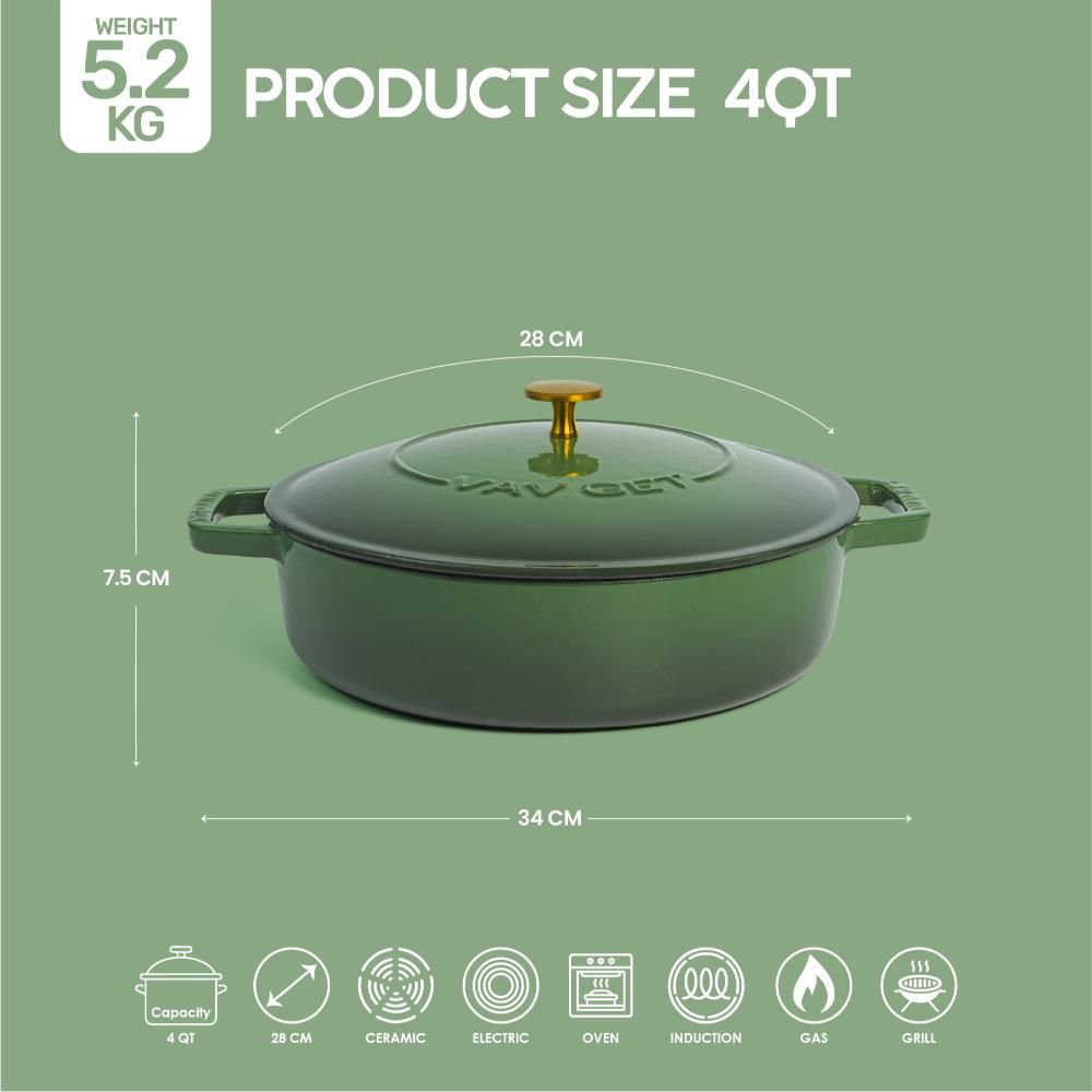 Enameled Cast Iron Dutch Oven Braiser. 28Cm, 3.79L, Olive Green, Induction & All Hob Compatible, Oven & Grill Safe - Olive Green