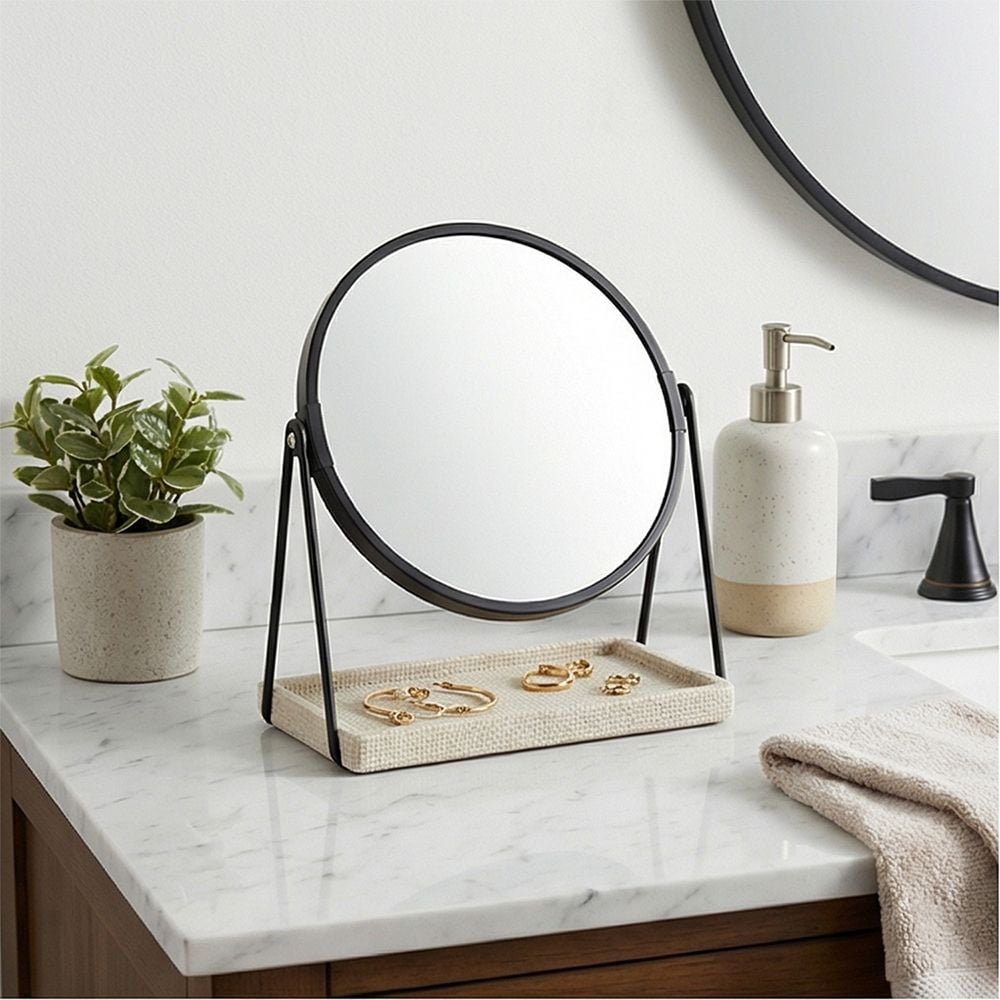 Compact and sturdy design ideal for vanities or countertops.