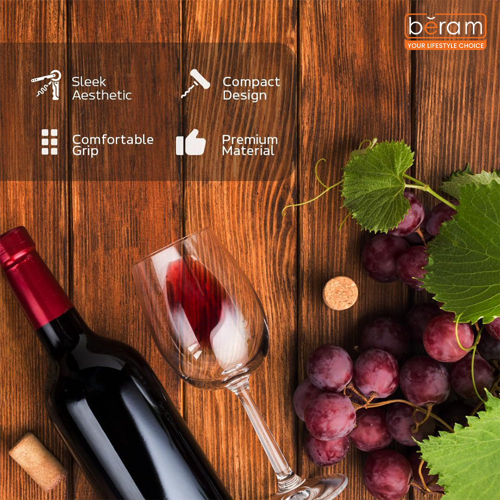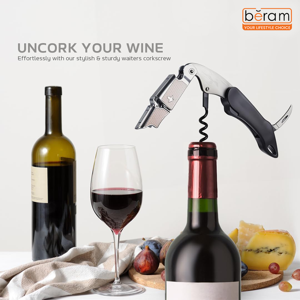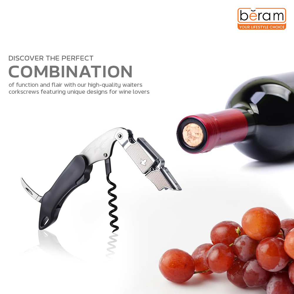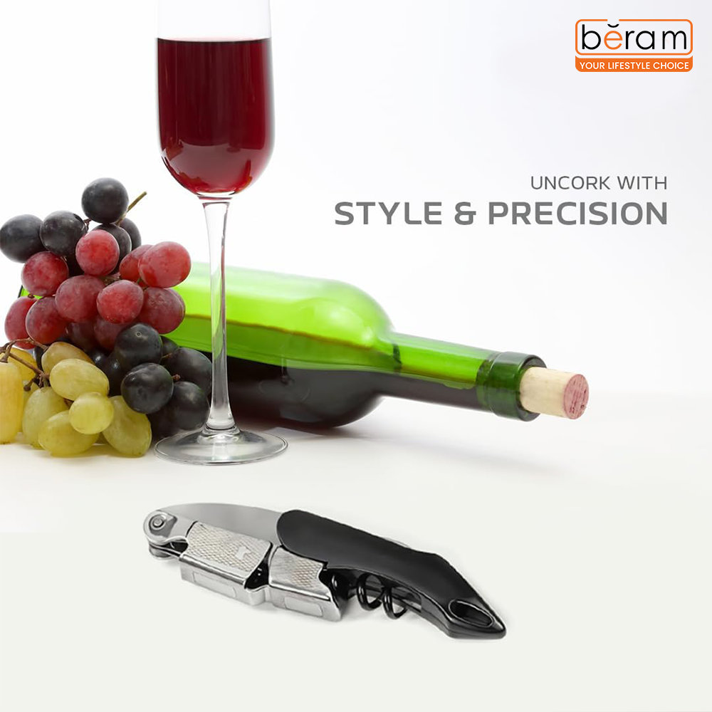 BERAM Multifunctional Opener, Waiters Corkscrew, Heavy Duty Stainless Steel Hinges, Bottle, Cork, Key Openers for Restaurant Waiters, Sommelier, Bartenders, Black
