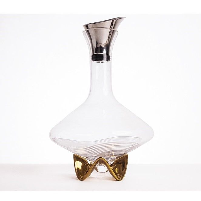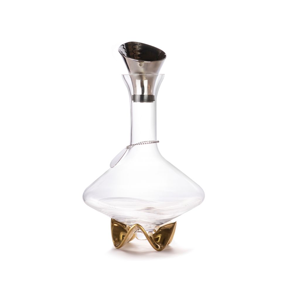 Wavemaker Wine Lead Free Crystal Decanter with Gold Arch Base 1 Liter Capacity