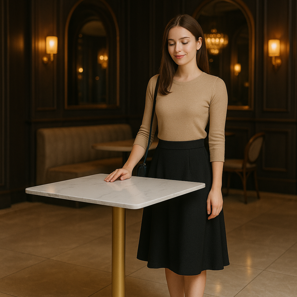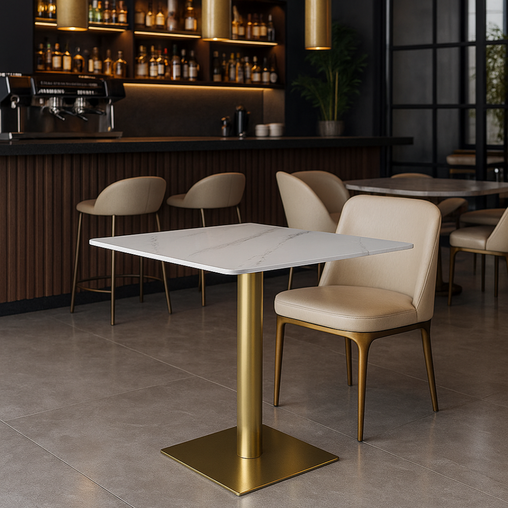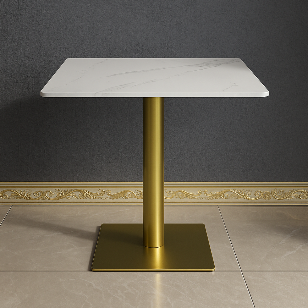 Bourgeois Square Shape Marble Top Metalic Base Cafe Restaurant Table Dining Table
