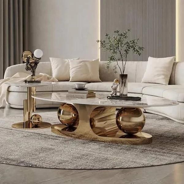 Globe Shape Coffee Table Marble Top and Golden Finish Elegant Centerpiece for Your Living Room Décor