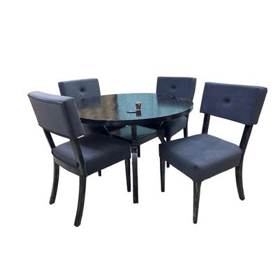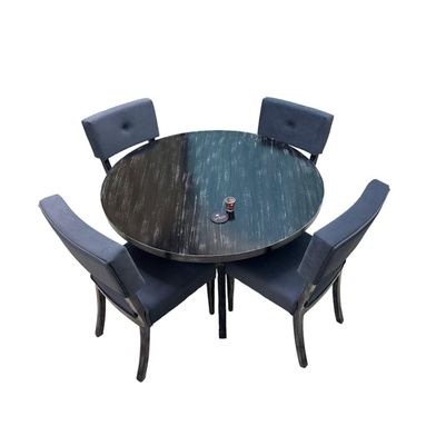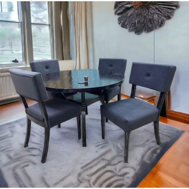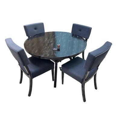 Modern Virtue Tufted Teak Wood Rust Finish 4 Seater Round Dining Table Set
