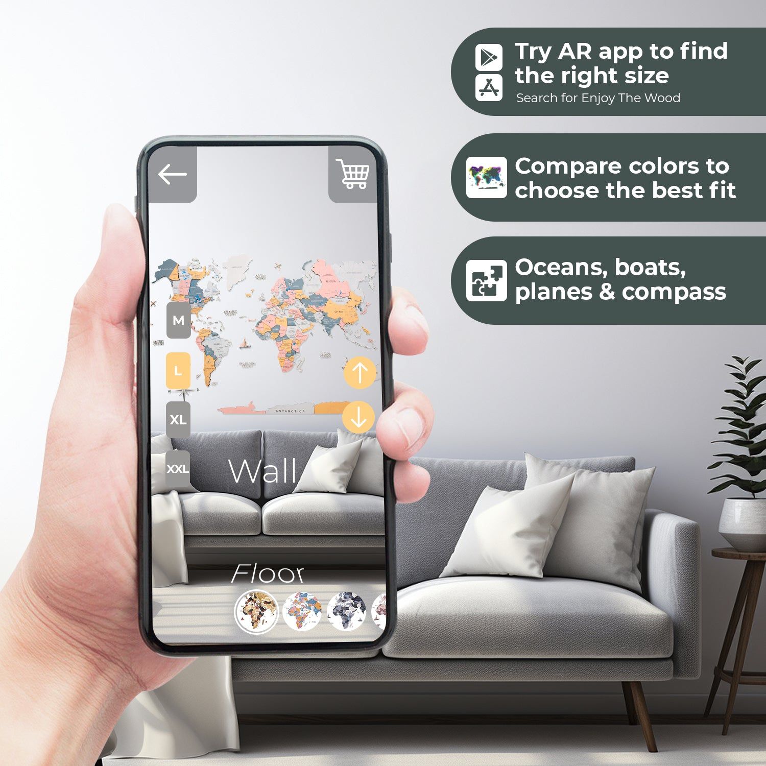 الخريطة العالمية الخشبية - مهرجان | طول النسخة الكبرى (200 × 120 سم)