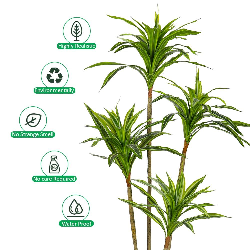 5.2ft Artificial Dracaena Plant, Nearly Natural Silk Plants with Pot, Fake Flowers with Green Leaves & Flexible Stems, Maintenance-Free & Long Lasting Faux Plants for Home Office Event Decor