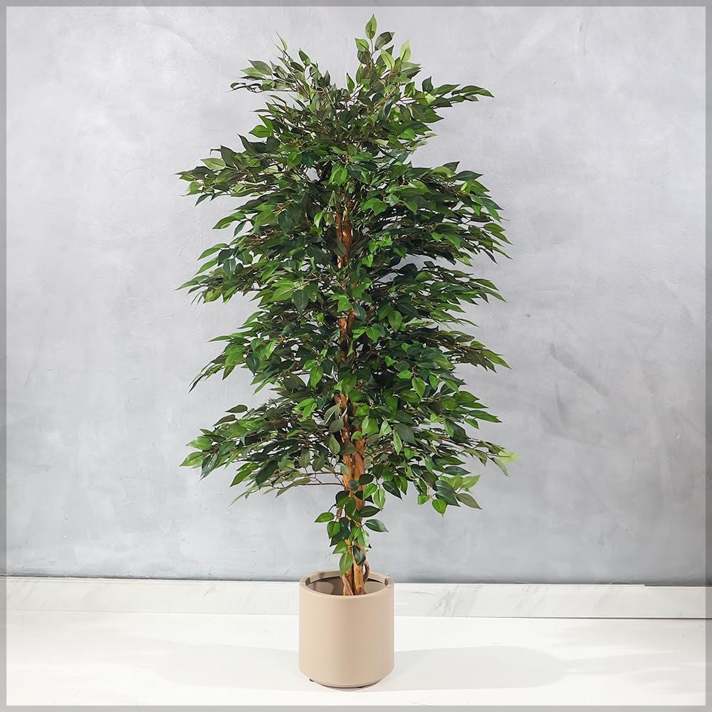 Durable, Waterproof Pot: The sturdy pot ensures this artificial ficus is ready for both indoor and outdoor environments, resisting wear and tear while maintaining its attractive look. It's perfect for enhancing living rooms, offices, patios, gardens, or any space in need of greenery.
