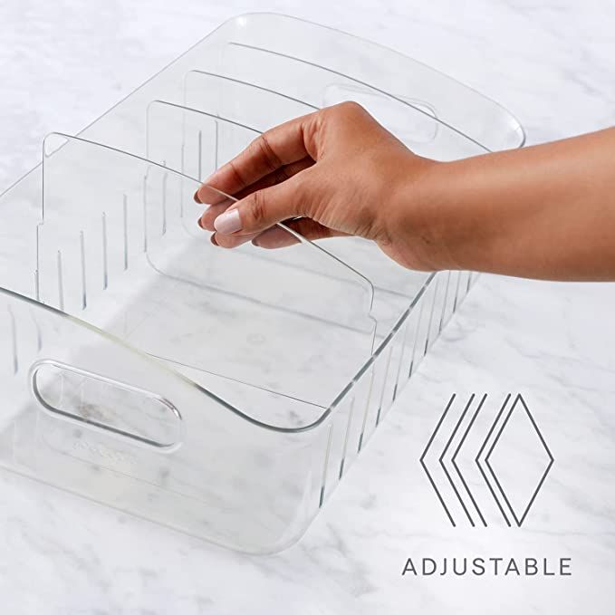 The YouCopia FreezeUp Freezer Bin 15" keeps your frozen foods organized, visible, and easy to reach. Designed with four adjustable dividers, this BPA-free clear bin fits a variety of frozen items—from boxed meals to loose bags—while keeping everything neat and tidy. The slanted front wall allows for quick grab-and-go access, and sturdy handles make it easy to slide out or carry to your prep area. With its durable, transparent design and customizable layout, the FreezeUp Freezer Bin saves time, reduces clutter, and helps you rule your ice kingdom with ease.