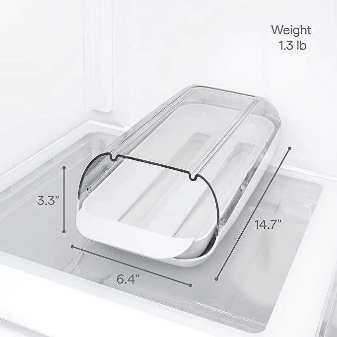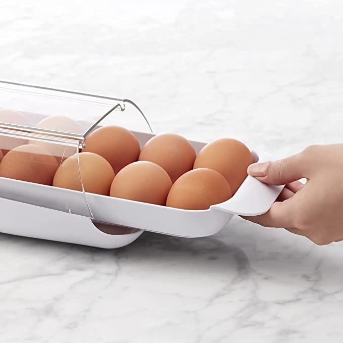 The YouCopia FridgeView Rolling Egg Holder keeps your fridge organized and your mornings sunny side up. Designed to hold 12–14 eggs, this BPA-free, stackable egg organizer features a clear rolling tray that automatically moves eggs forward for easy access- no guessing, lifting, or shuffling cartons. The removable inner tray makes refilling simple without disturbing items stored above, while the transparent cover lets you see exactly when you’re running low. Perfect for any refrigerator size, the FridgeView Rolling Egg Holder combines smart design with effortless functionality to keep your eggs fresh, visible, and always ready to roll.