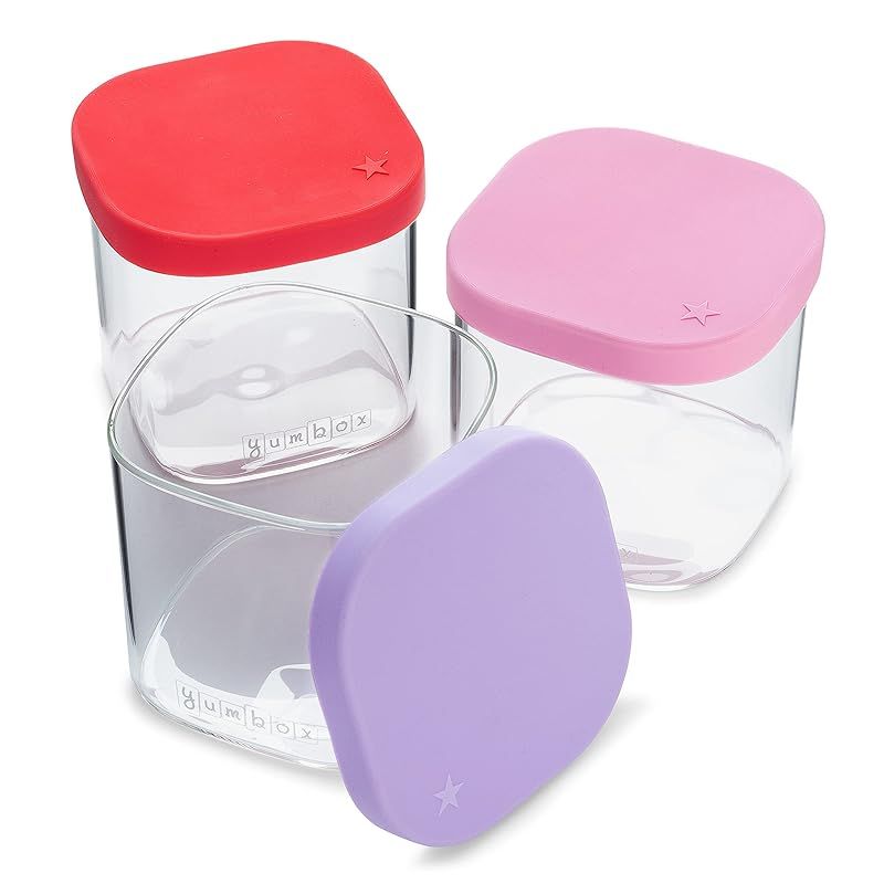 Yumbox Chop Chop Glass Meal Prep Food Storage Cubes (Juicy (Pink Lids))