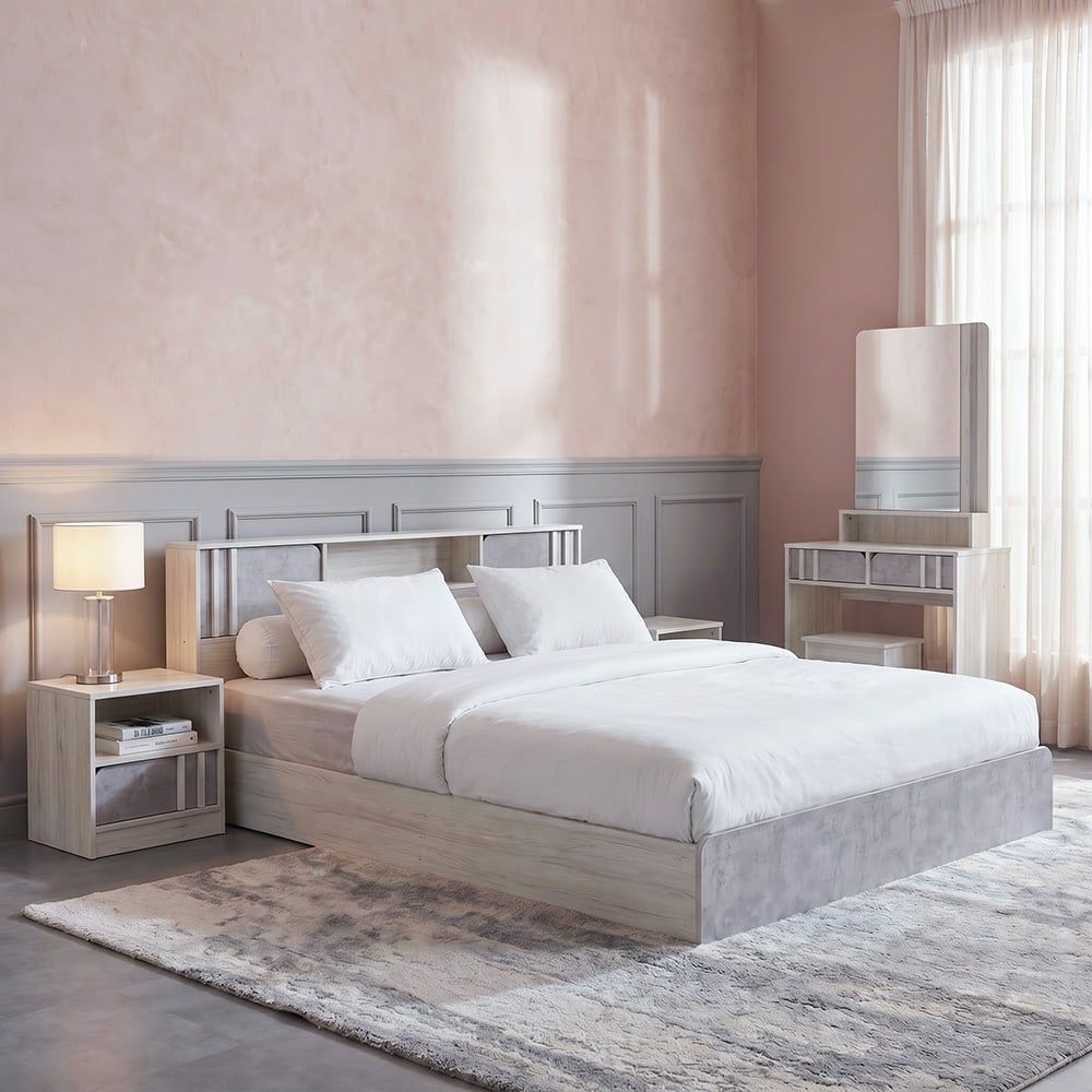 Bed: Most of our bedroom sets are designed for a couple’s bedroom and comes with a specific sized (180x200) king bed. However, some bedroom sets offer a variation of bed sizes to choose from.