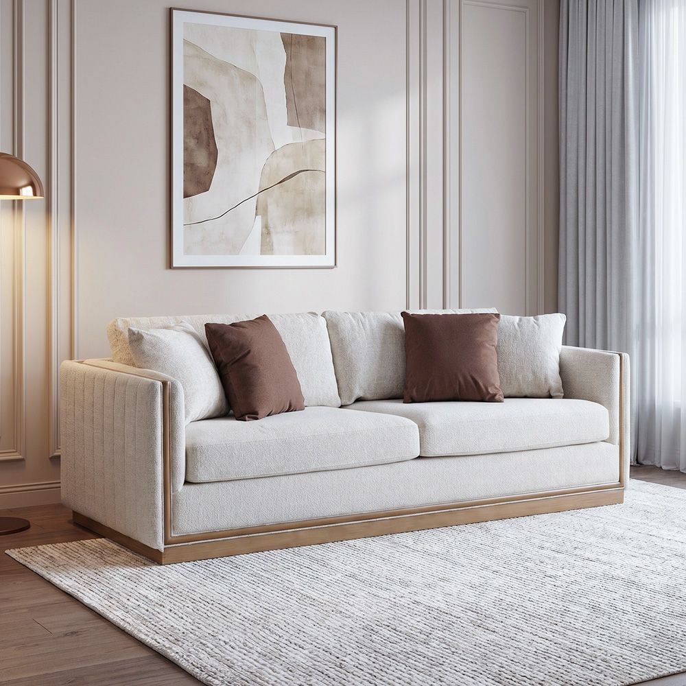 Danube Home has a host of fabric upholstered three-seater sofas; the fabric choices include velvet, leatherette, and other hardwearing fabrics that can effortlessly withstand daily wear and tear. You can find pet-friendly fabric choices too.