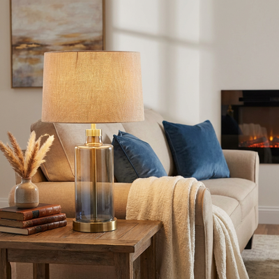 Metal Table Lamp With Acrylic Beads Shade Brushed Steel Finish
