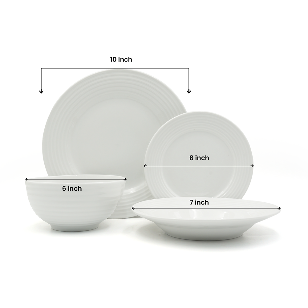 16Pc Ceramic Dinner Set Service Of 4 Includes Dinner&Dessert Plates Bowls Semi Bowl Plate Durable White LightWeight Microwave Safe for Everyday Use Special Occassion Gifting