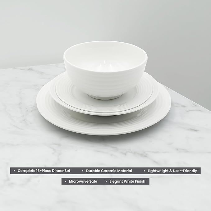 Experience style, durability, and everyday convenience with this elegant 16-Piece Ceramic Dinner Set, designed to serve four