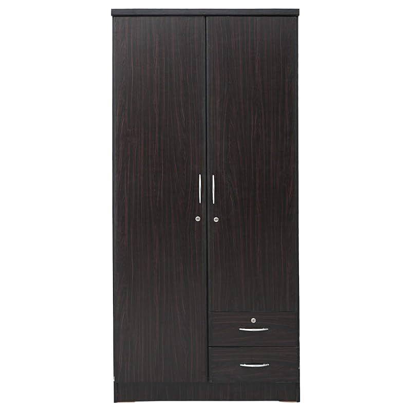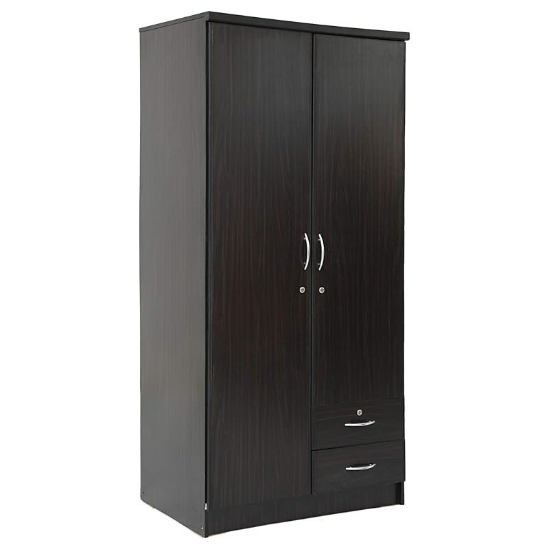 2 Door Wooden Wardrobe, Wenge - D50 x W90 x H190 cm by Galaxy Design, Black, GDF-622