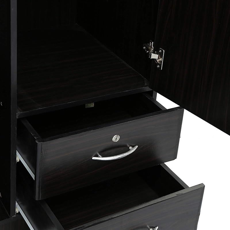 The product 2 Door Wooden Wardrobe, Wenge - D50 x W90 x H190 cm by Galaxy Design, Black, GDF-622 images have props used for illustrative purposes. Product Color may vary slightly due to photographic lighting or your screen settings.