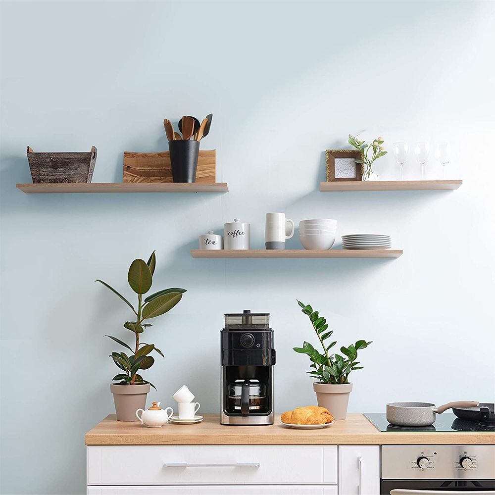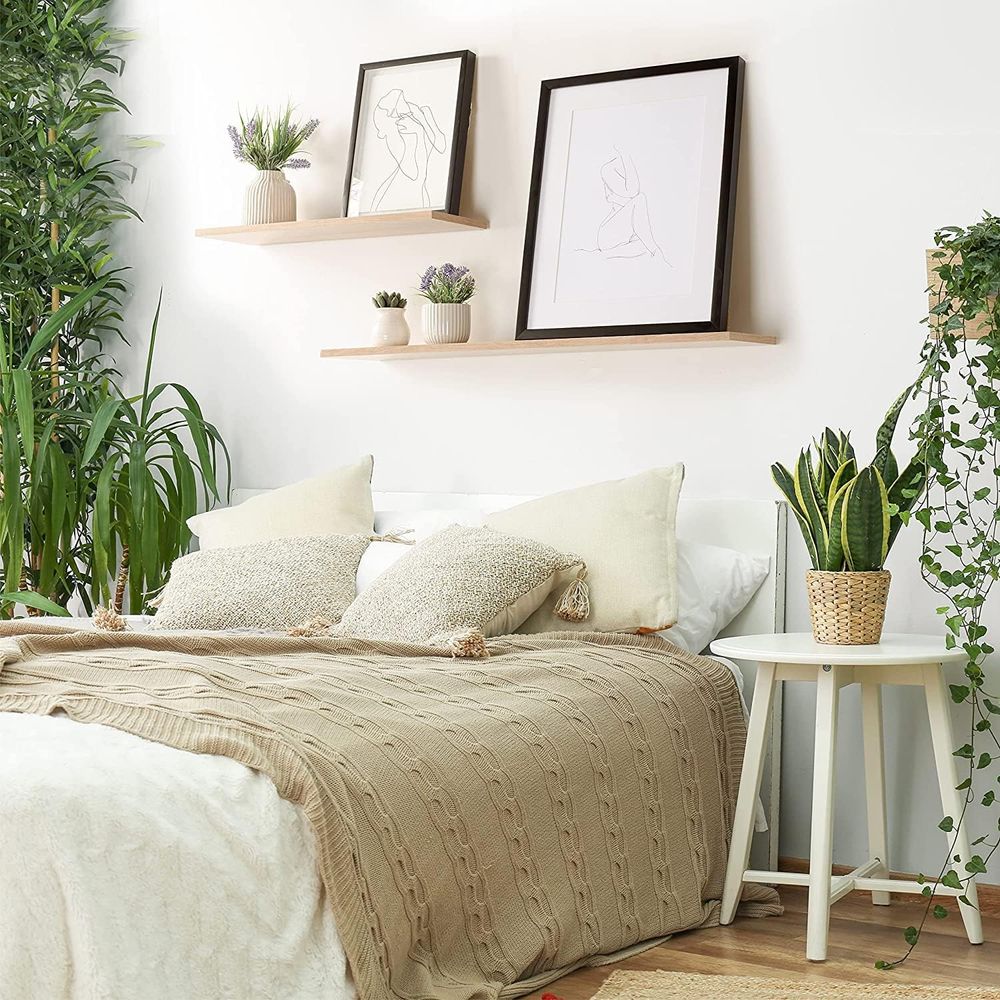 Simple and Modern Design: Set of 2 wall-mounted floating shelves with simple and modern design, made of premium MDF, coated by eco-friendly finish. Available in many sizes and colors Easy To Install: The white floating shelves set includes mounting hardware and step-by-step instructions, installation can be completed quite quickly. The wall shelf gives an actual floating look as no supports are visible once you finish the installation.You can combine the shelves to different location and latitudes as you like.