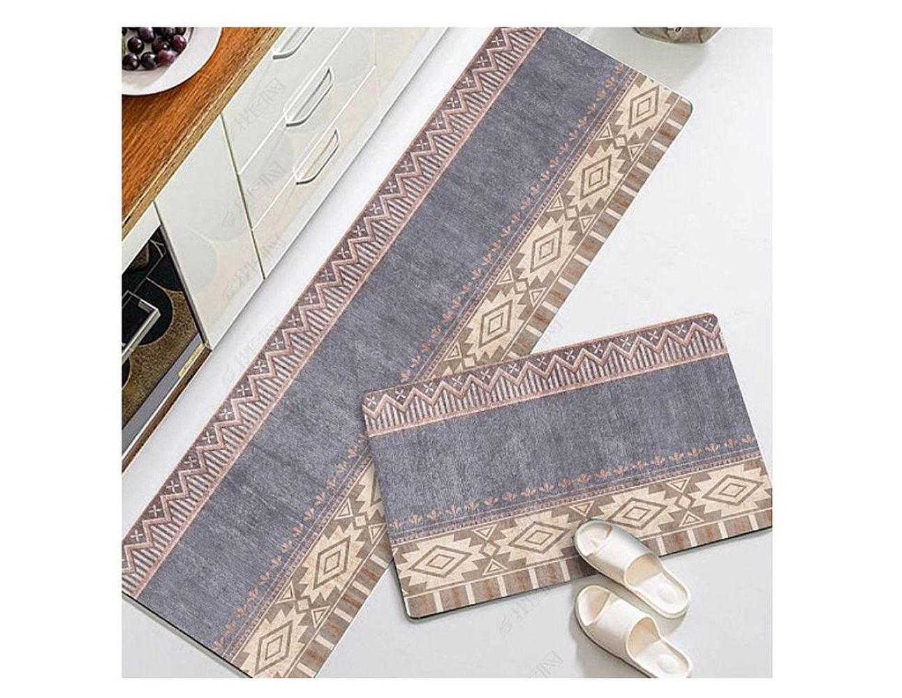 2 PCS Set Large Kitchen Mats With Thick Non Slip Bottom For Kitchen Floor With Beautiful Design (50-80CM And 50-160CM)