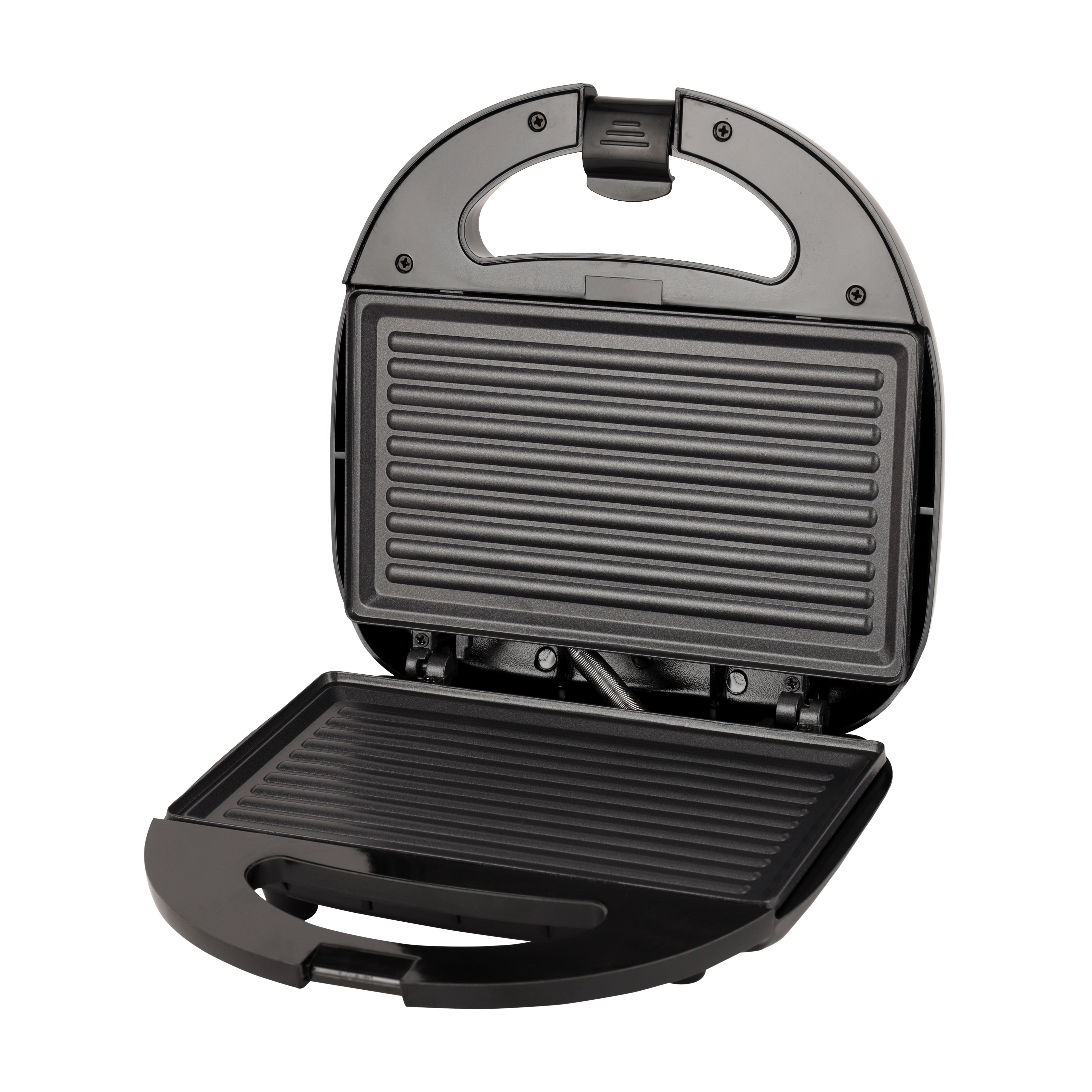 Stuff your sandwich bread with your favorite fillings, coat it with butter or oil, and place it in the maker. It's as easy as it sounds with the Olsenmark 2-slice grill maker. The grill maker features a sturdy and durable housing, so it is a reliable choice for your home. To prepare your favorite sandwich, the grill maker comes with a 2-slice capacity. The plates are non-stick and require only a very small amount of butter or oil to make your sandwich delicious and healthy. Owing to its non-stick coating, the grill makes it easier for you to flip the bread and clean it afterwards. This easy-to-operate grill maker makes your favorite sandwich, be it a grilled cheese, ham sandwich, chicken sandwich, or egg sandwich, within minutes or by just warming up breads like tortillas, pita, etc. The power-on and ready-light indicators help you know the status of your sandwich and thus avoid burning your fingers and food. The grill maker is made of durable material and has a cool-touch housing for protection against burns. The non-stick plates are easy to clean and resistant to corrosion. The sturdy anti-skid feet help to keep the sandwich maker in place, ensuring maximum safety. The stylish black color adds to the look of your kitchen countertop and makes it an elegant product. The product uses only 750 W of power, which means it consumes less electricity and delivers maximum efficiency. This grill maker is a great asset to your home and also a thoughtful gift idea. Plus, the grill comes with a 2-year warranty."