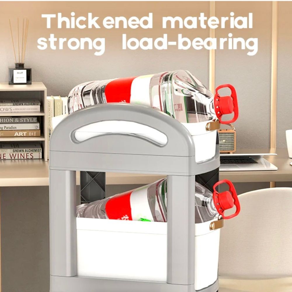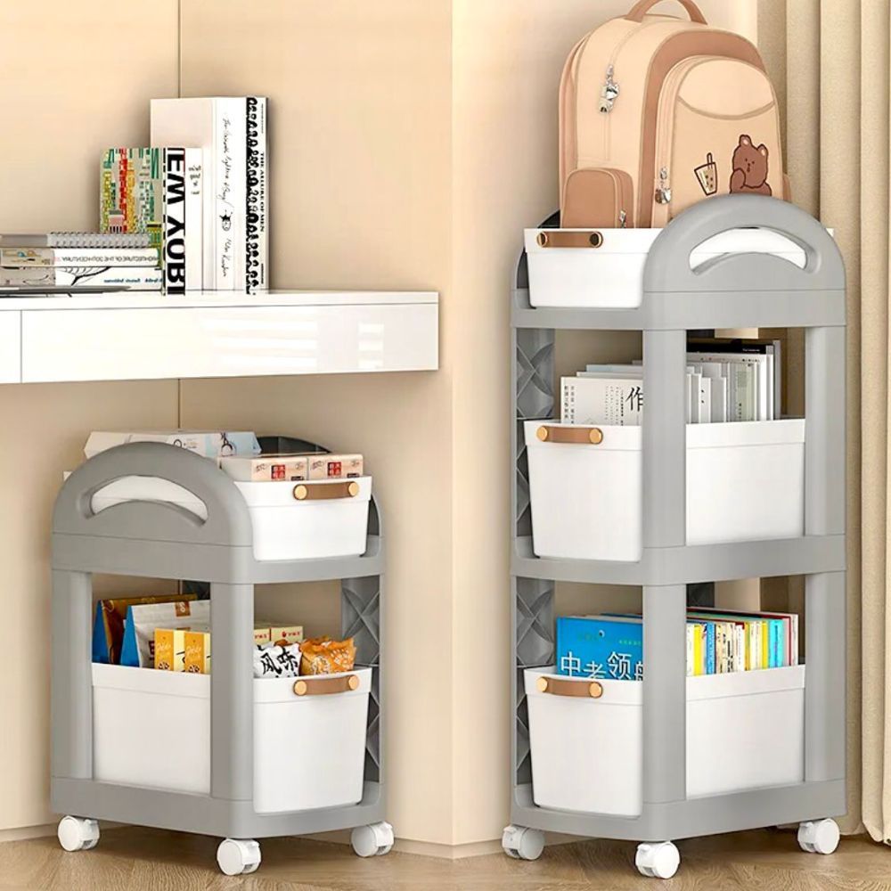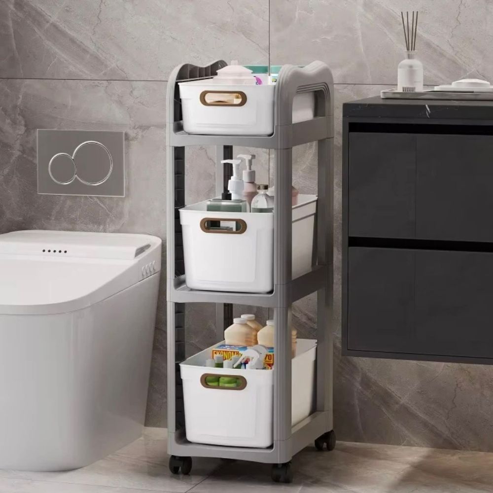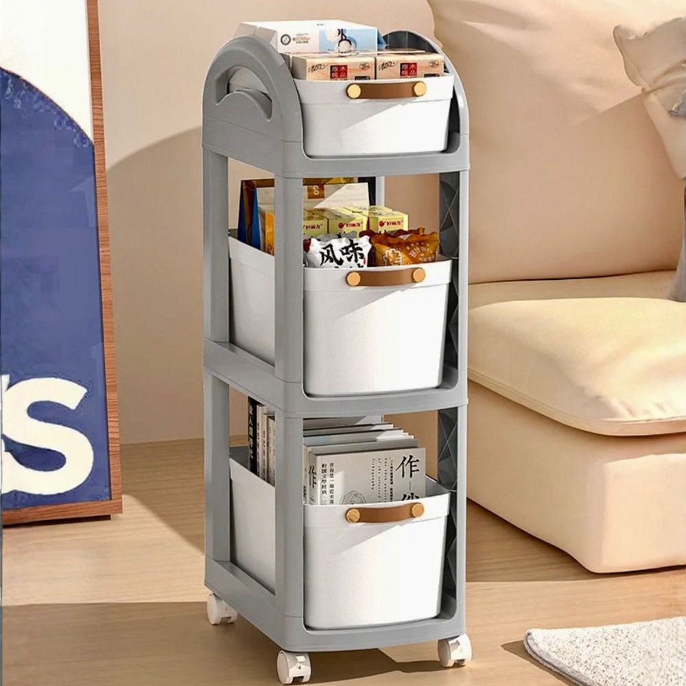 A 3-layer trolley with drawers and wheels offers convenient, organized storage with three tiers of pull-out drawers