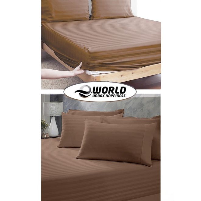 3 Piece Luxury Dark Brown Striped Bed Sheet Set with 1 Flat Sheet and 2 Pillowcases for Hotel and Home Crafted from Ultra Soft and Breathable Cotton for Year-Round Comfort, Double
