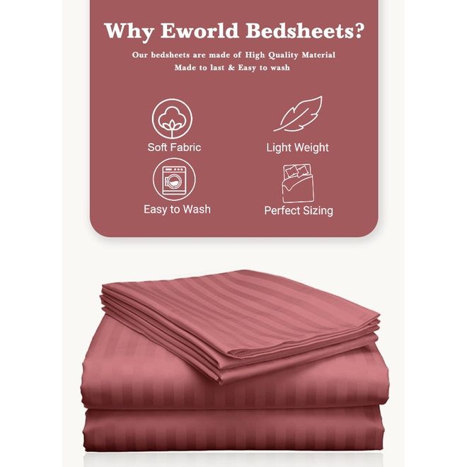 3 Piece Luxury Maroon Striped Bed Sheet Set with 1 Flat Sheet and 2 Pillowcases for Hotel and Home Crafted from Ultra Soft and Breathable Cotton for Year-Round Comfort, Single