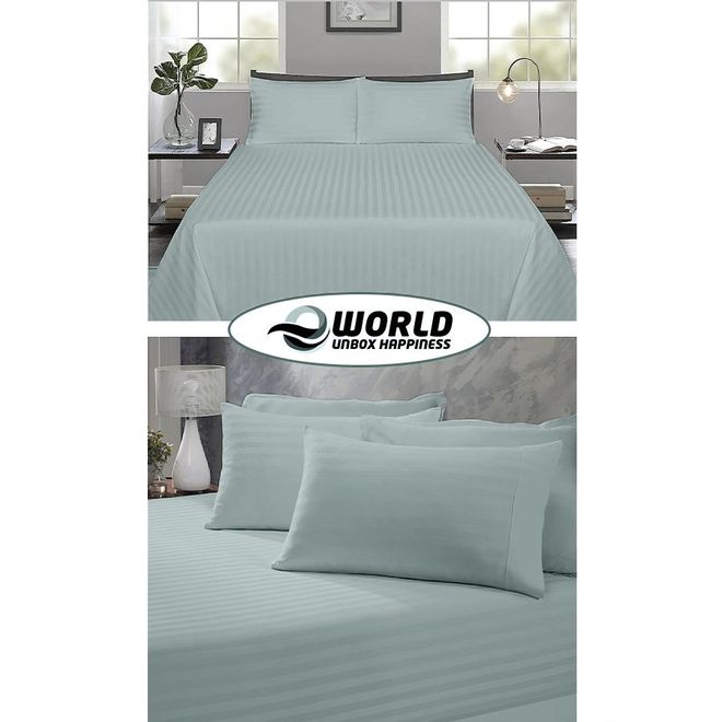3 Piece Luxury Pestal Green Striped Bed Sheet Set with 1 Flat Sheet and 2 Pillowcases for Hotel and Home Crafted from Ultra Soft and Breathable Cotton for Year-Round Comfort, Double