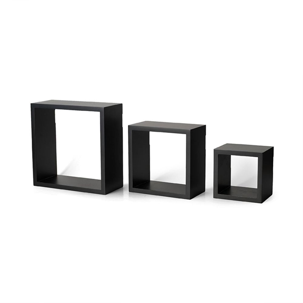 3-Piece Wall-Mounted Floating Shelves – Black 40×40 cm for Books & Accessories