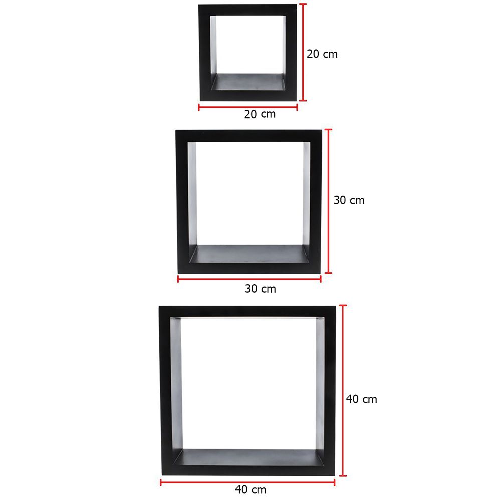 Large Shelve 40x40cm, medium shelve 30x30 cm, small shelve 20x20cm
