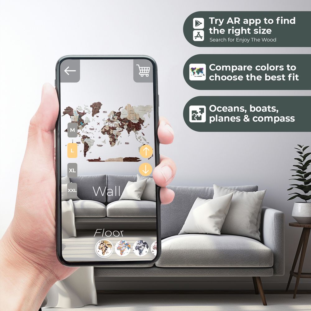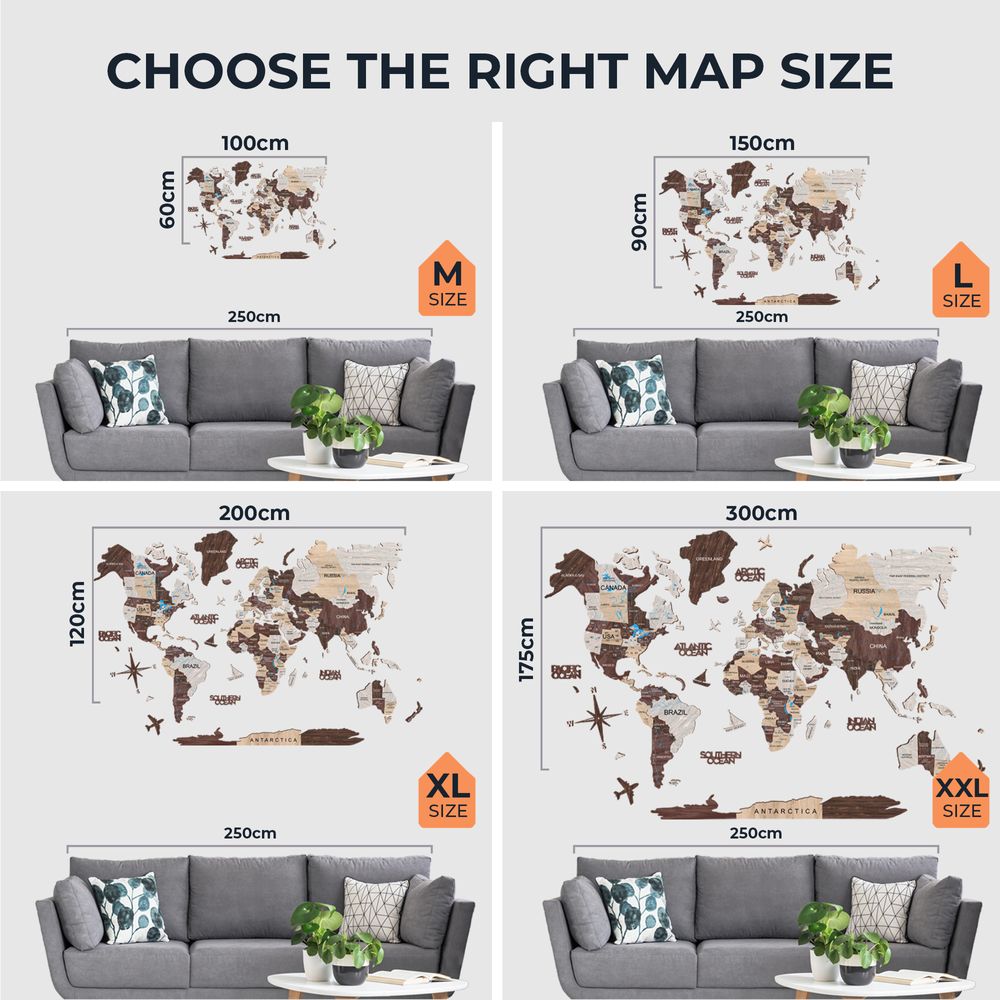 3D Wooden World Map - Cappuccino | XXL (300 x 175cm)