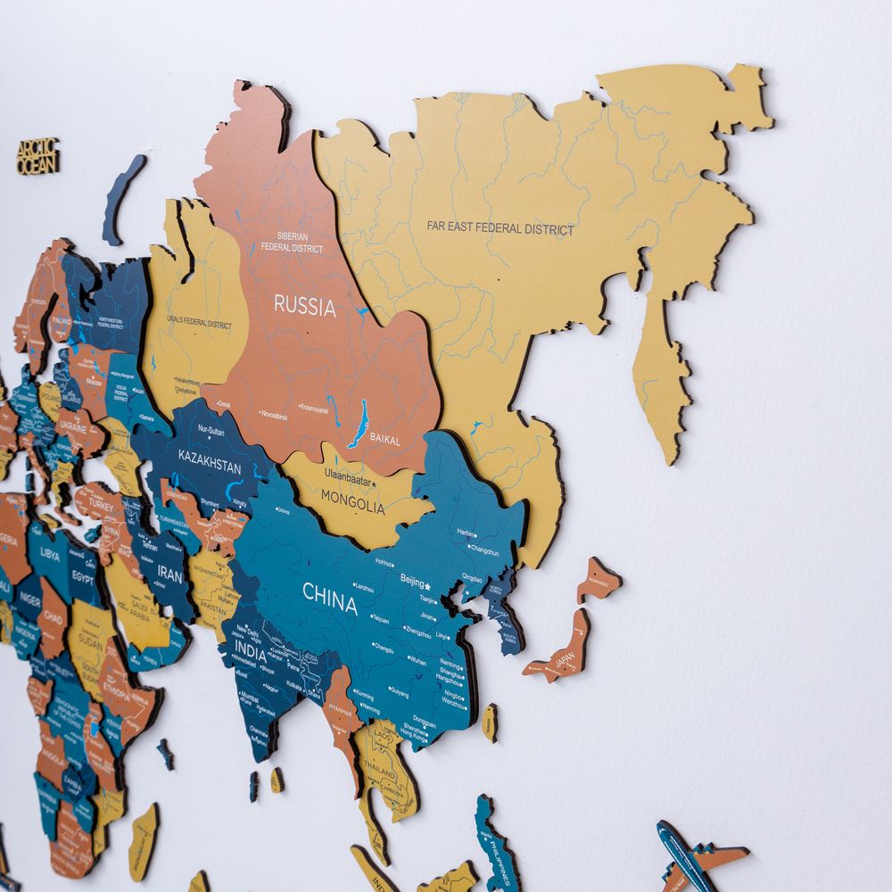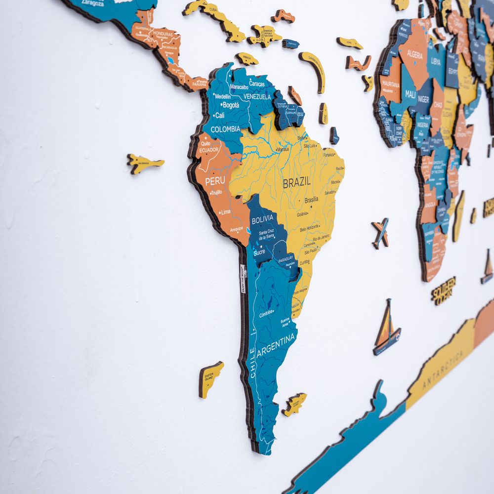 3D Wooden World Map - Indie | XXL (300 x 175cm)