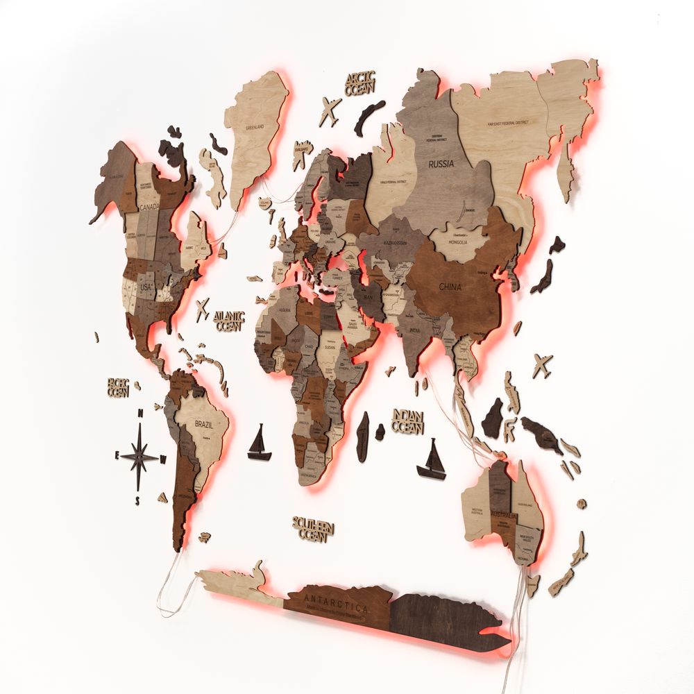 Wooden World Map LED 3.0 is not just a map, it is a breathtaking combination of aesthetics and innovation!