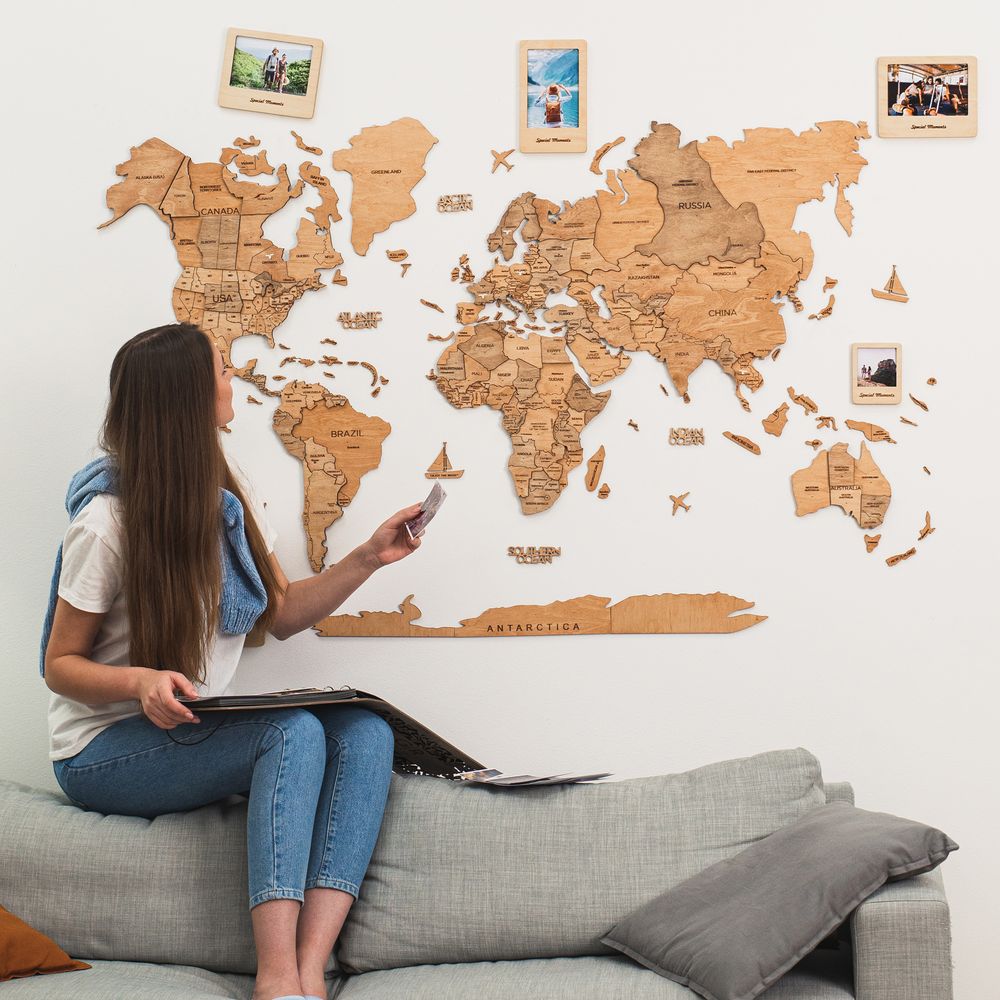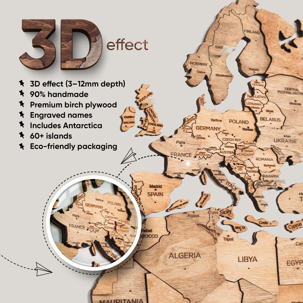 Enjoy Wood - 3D Wall Art - Stylish Wooden Map Decor for Home, Bedroom or Office - Perfect Housewarming Gift, Elegant and Handmade Wall Art - Light Color - XL
