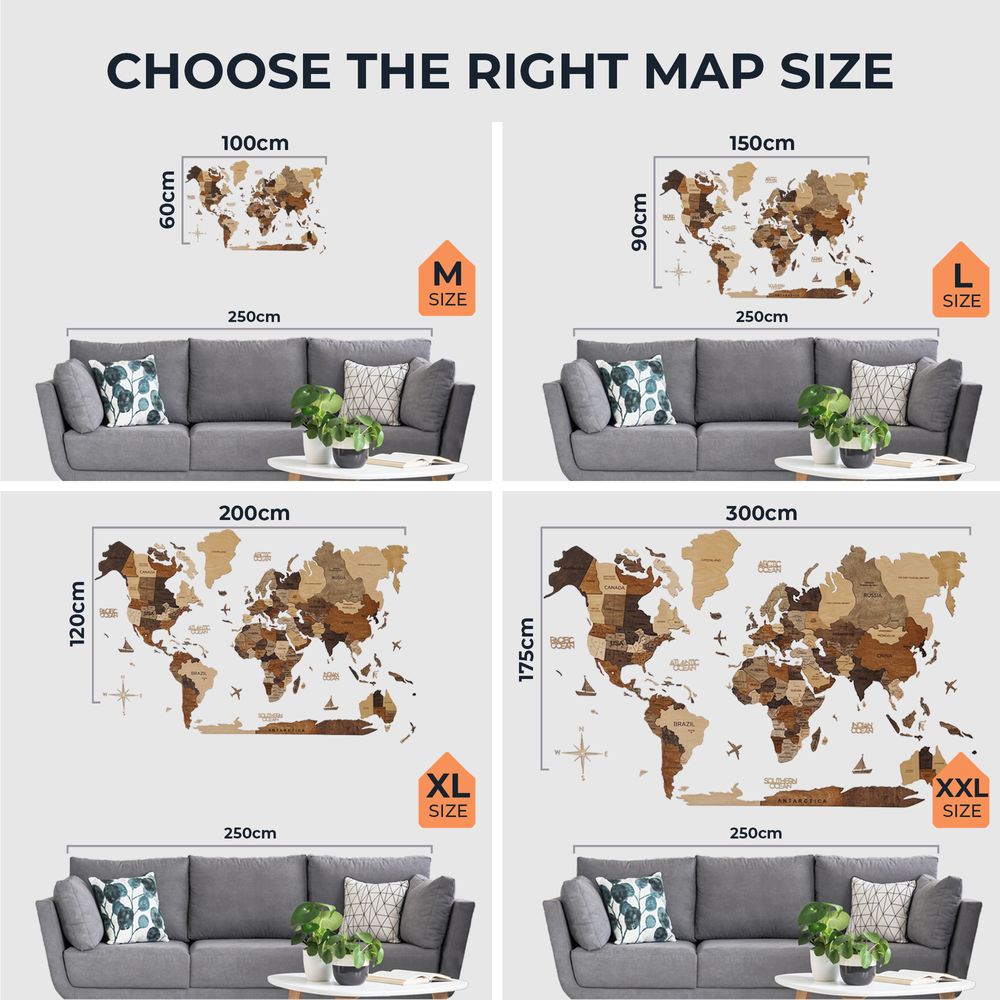 Enjoy Wood - 3D Wall Art - Unique Wooden World Map Decor for Home, Bedroom or Office - Perfect Housewarming Gift, Elegant and Handmade Wall Art - Multicolor Design - L