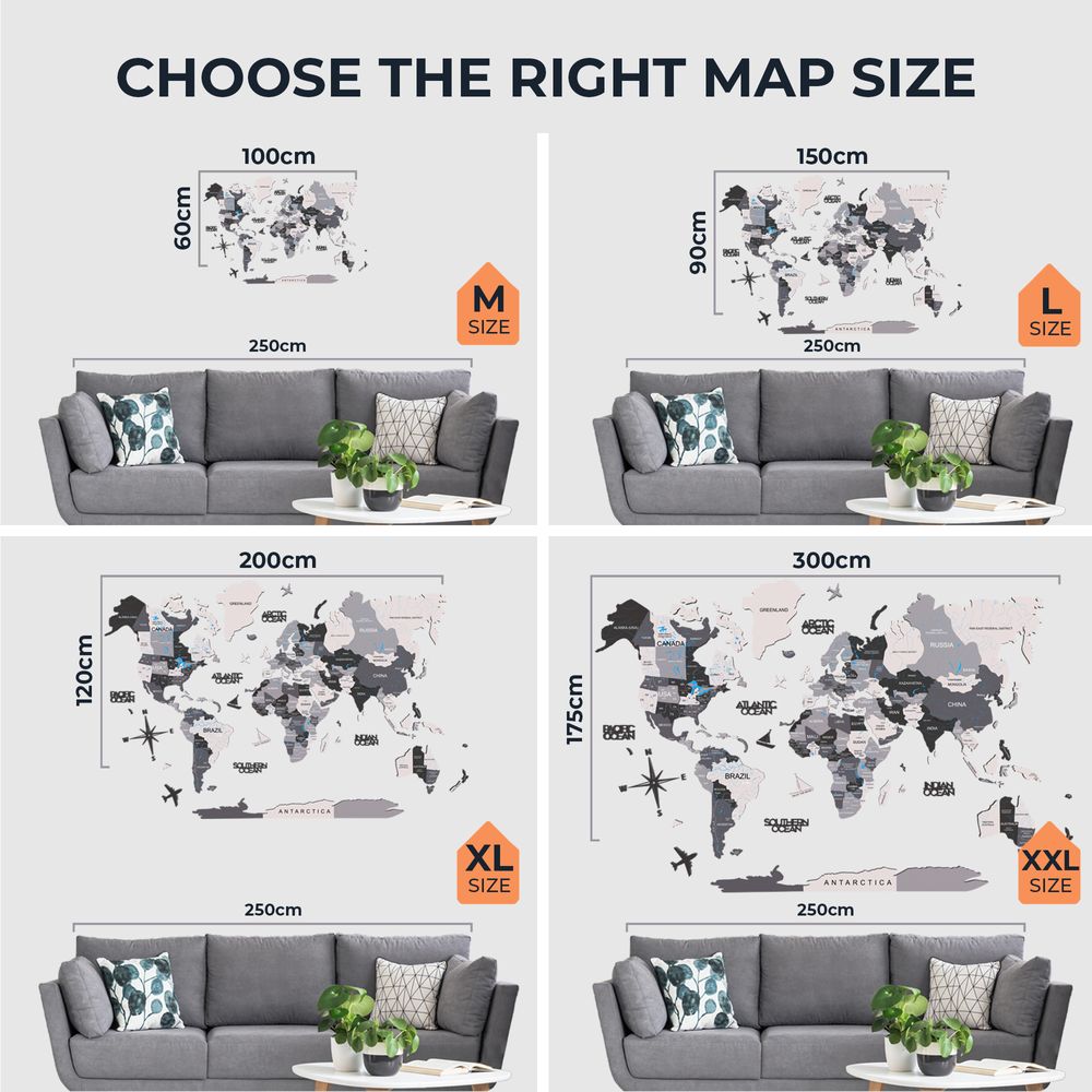 3D Wooden World Map - Nordik | XL (200 x 120cm)