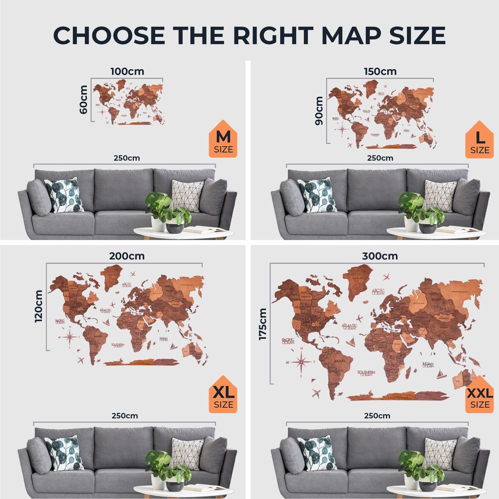 Enjoy Wood - 3D Wall Art - Stylish Wooden Map Decor for Home, Bedroom or Office - Perfect Housewarming Gift, Elegant and Handmade Wall Art - Oak Wood Design - L
