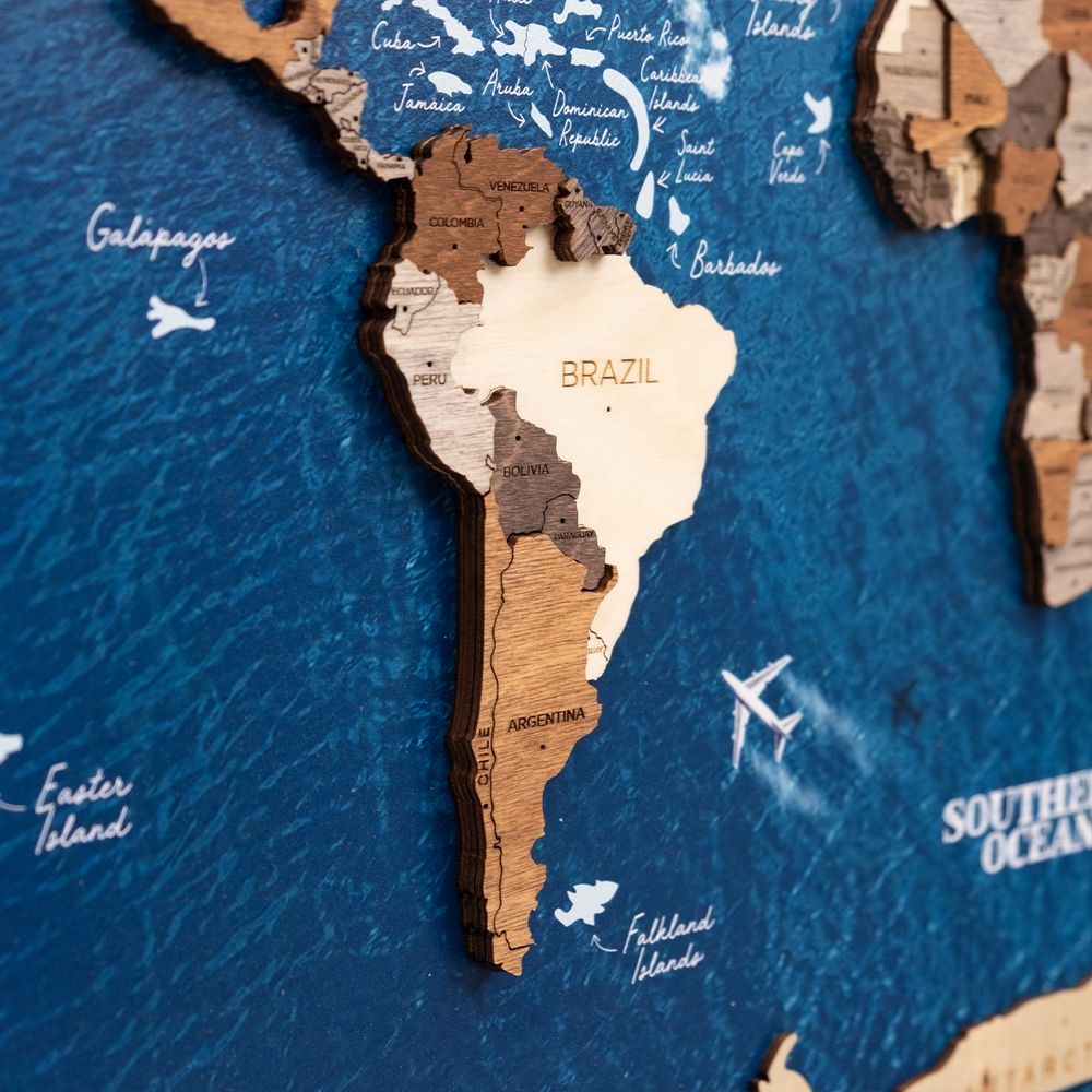 Crafted from natural wood 🌲, this map is eco-friendly and features a unique finish. Please note that this is not a geographical map; some smaller countries and islands may be omitted, and shades may vary due to the natural materials used.