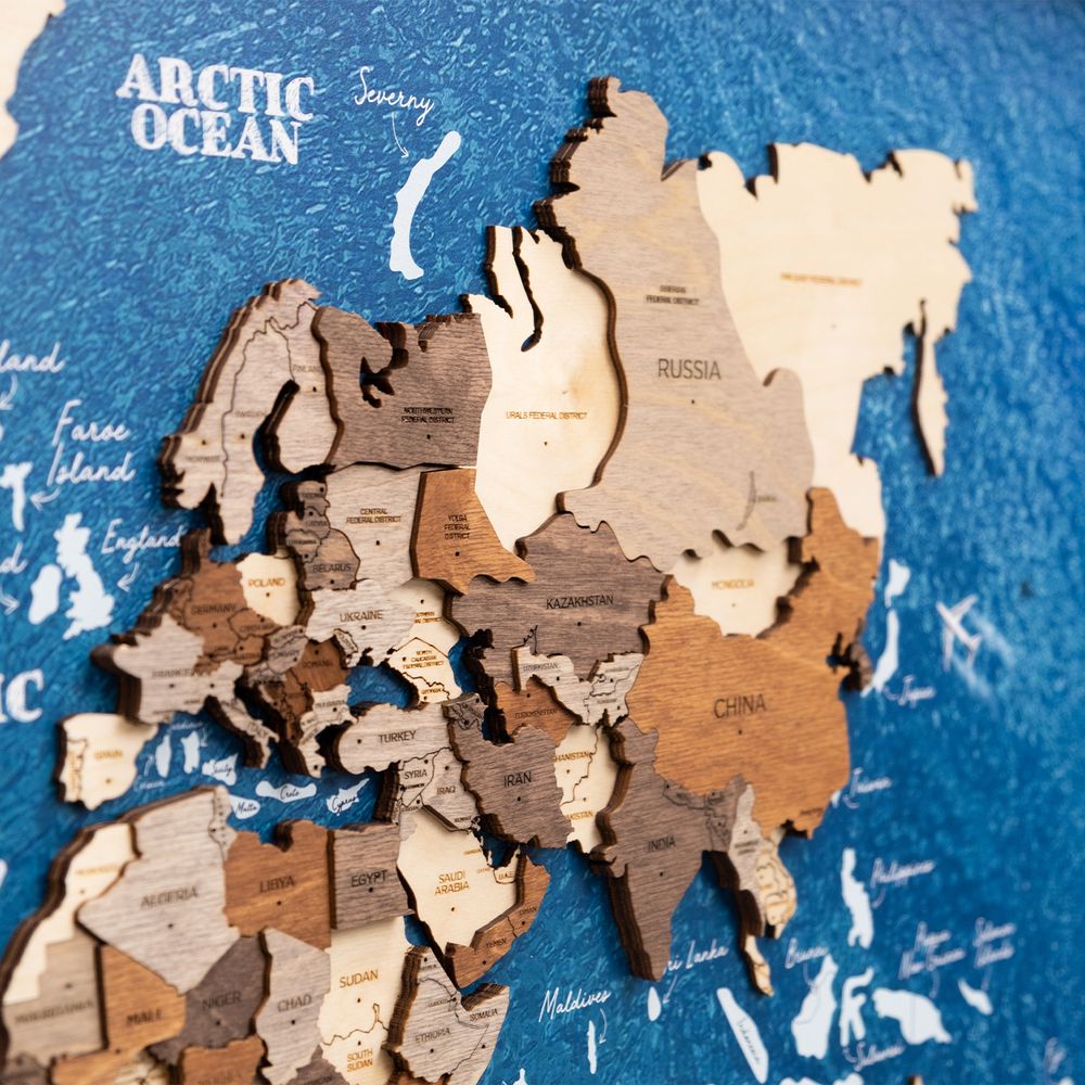 3D Wooden World Map on Panel - Multicolor Ocean - M (84 x 58cm)