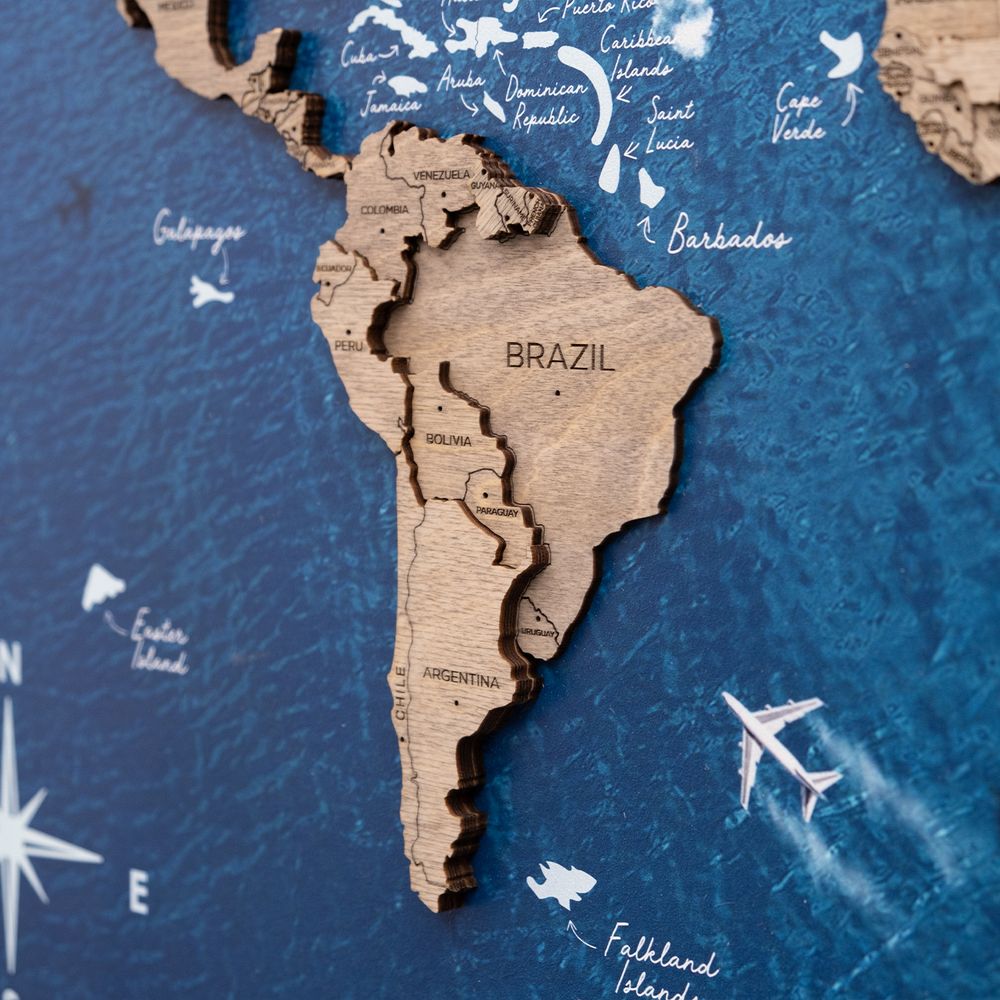 Crafted from natural wood 🌲, this map is eco-friendly and features a unique finish that may vary in shades, making each piece truly one-of-a-kind. Please note that this is not a geographical map; some smaller countries and islands may be omitted.