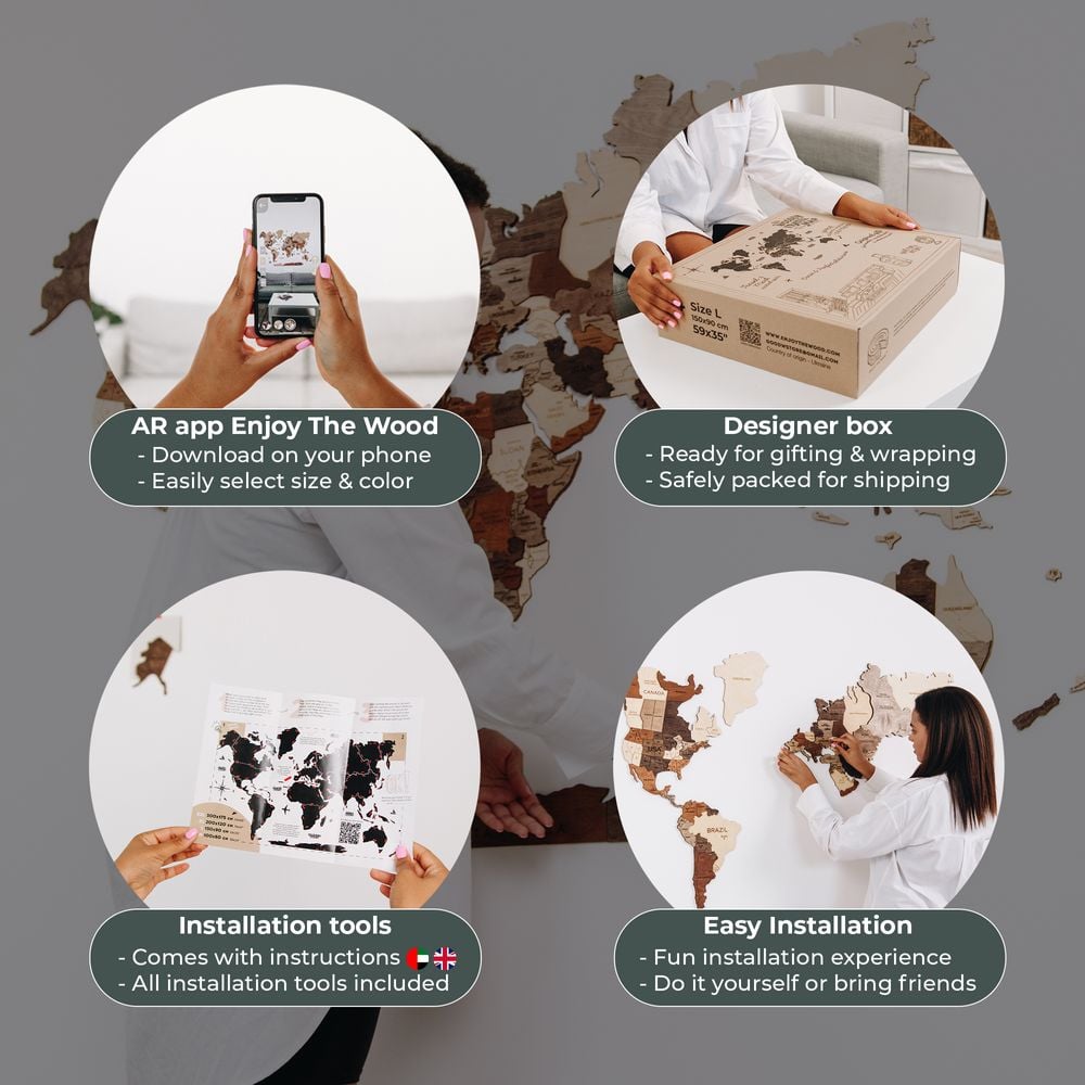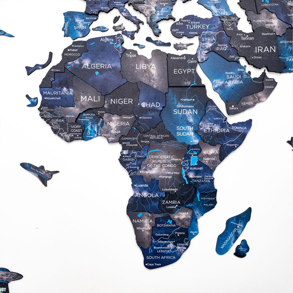 3D Wooden World Map - Space | XL (200 x 120cm)