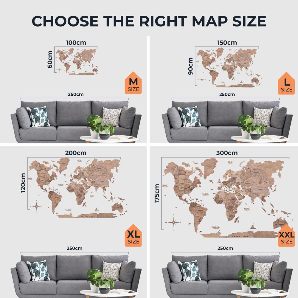 Enjoy Wood - 3D Wall Art - Stylish Wooden Map Decor for Home, Bedroom or Office - Perfect Housewarming Gift, Elegant and Handmade Wall Art - Terra Design - XXL